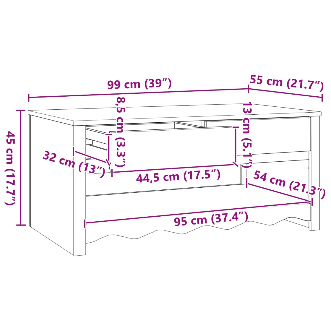 Masă de cafea Drammen Alb 99 x 55 x 45 cm Lemn masiv de pin
