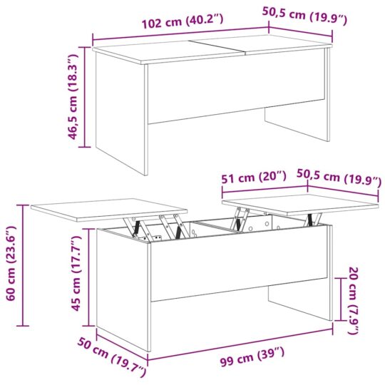Masă de cafea Lemn vechi 102 x 50.5 x 46.5 cm Lemn compozit