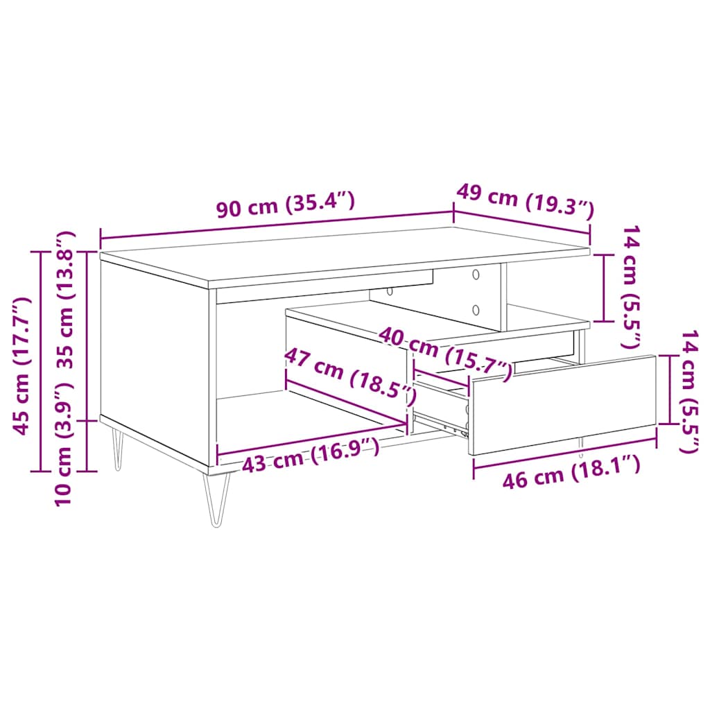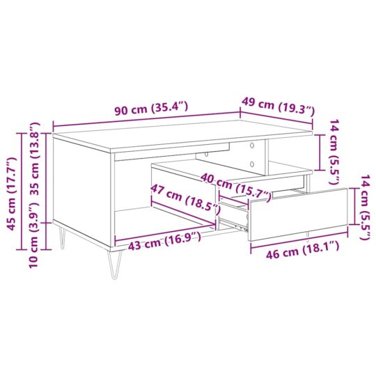 Masă de cafea Stejar Negru 90 x 49 x 45 cm Lemn compozit