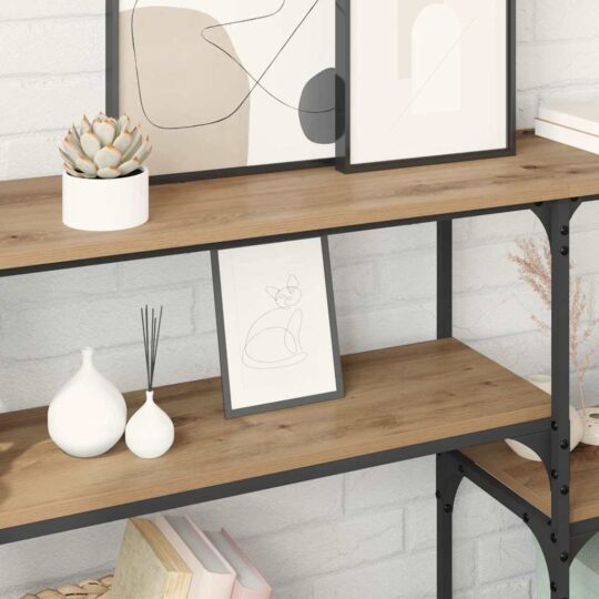 Masa de consolă industrială cu rafturi e un element central atrăgător în orice spațiu de locuit modern. Această piesă nu doar că îndeplinește nevoia de stocare cu suprafața ei, ci aduce și un aer chic industrial. Făcută din metal negru și lemn prelucrat, are un mix cool de materiale, ideale pentru lofturi sau interioare moderne. Cu designul ei versatil, masa asta se potrivește perfect în sufragerii, holuri sau coridoare, îmbunătățind decorul și oferind soluții de stocare utile.