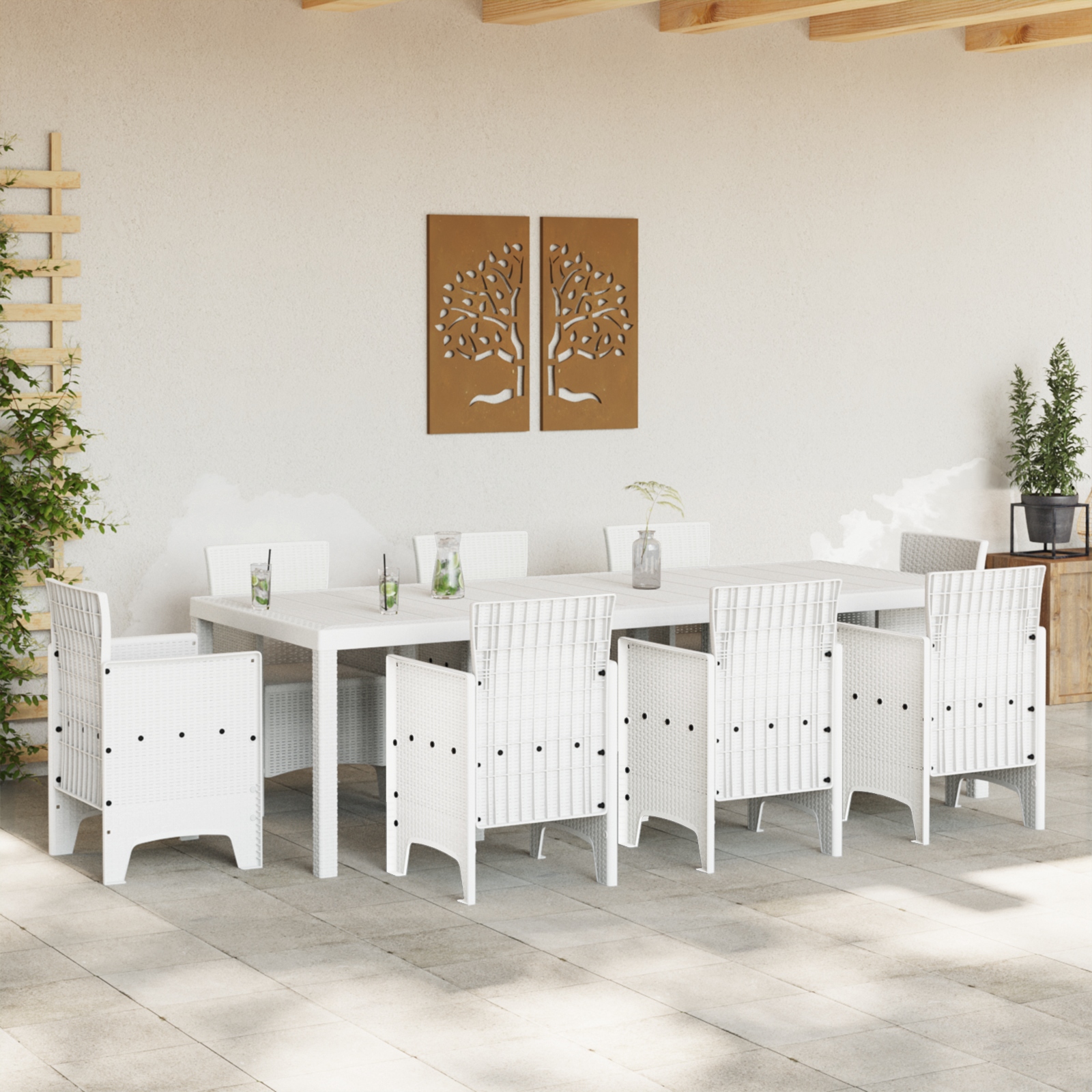 Masă de Grădină Alb 250 x 100 x 73 cm poliratan