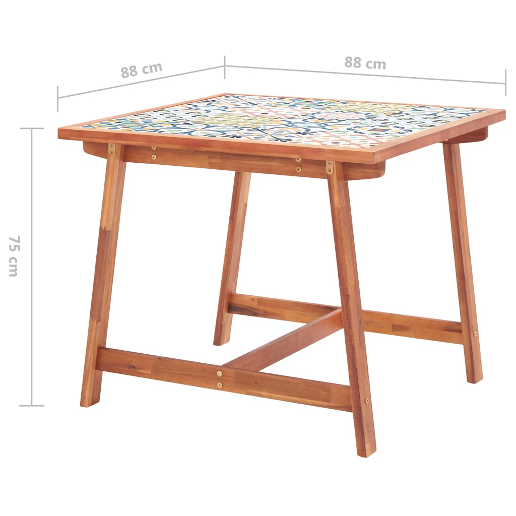 Masă de grădină, blat mozaic, 88x88x75 cm, lemn masiv de acacia