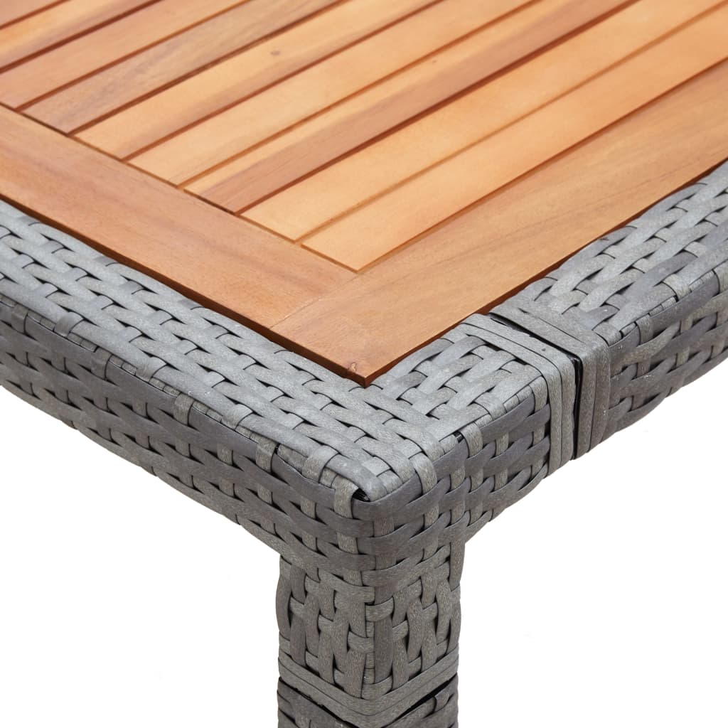 Masă de grădină, gri, 200x200x74 cm, poliratan și lemn acacia