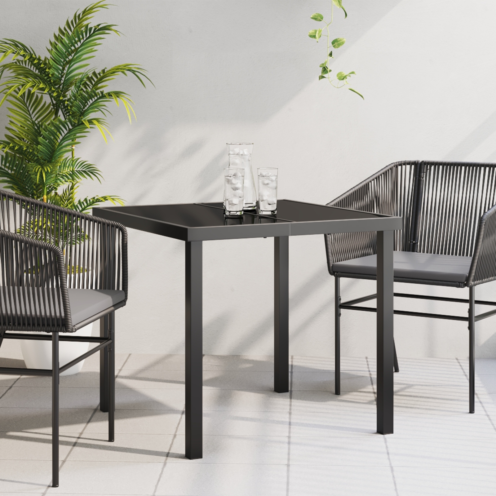 • Cadru elegant finisat pe negru: Masa are un cadru modern din lemn de tec solid și metal. Combinația asta îi dă stabilitate, perfectă pentru vremea de afară. Cadru iese subtil în evidență, adăugând o notă de eleganță spațiului tău exterior.