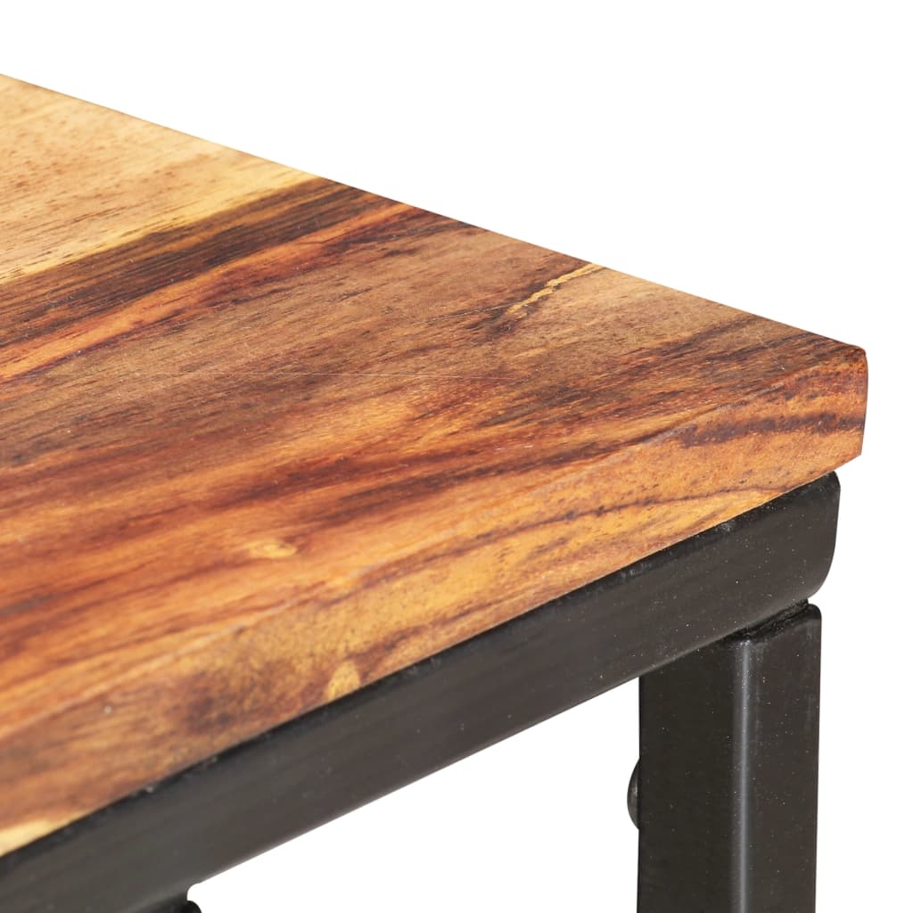 Această masă pentru canapea este realizată din lemn masiv cu finisaj natural, fiind stabilă și sigură pentru a amplasa băuturi, coșuri cu fructe sau obiecte decorative. Cadrul din oțel vopsit electrostatic adaugă robustețe construcției. Măiestria rafinată a creației și granulația lemnului fac ca fiecare piesă de mobilier să fie deosebită și ușor diferită de următoarea. Fiecare etapă a procesului de fabricație este realizată cu cea mai mare grijă, fie că este vorba de lustruire, vopsire sau lăcuire. În plus, este ușor de asamblat.