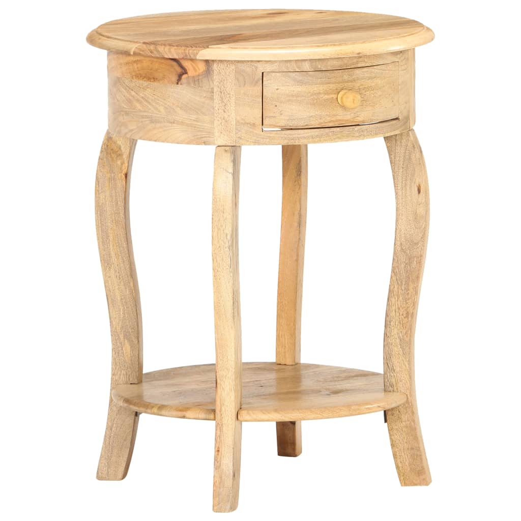 Masa de capăt este realizată din lemn masiv de mango, un lemn tropical de esență tare, care poate susține greutatea. De asemenea, rezistă și trecerii timpului, fiind stabil și durabil. Măiestria creației și granulația frumoasă a lemnului fac ca fiecare piesă de mobilier să fie unică și ușor diferită de celelalte. Măsuța decorativă are, de asemenea, un sertar și un raft care oferă spațiu suplimentar pentru ornamente, produse cosmetice și alte lucruri personale. Poate servi, de asemenea, ca noptieră, masă lângă pat, suport de telefon etc.