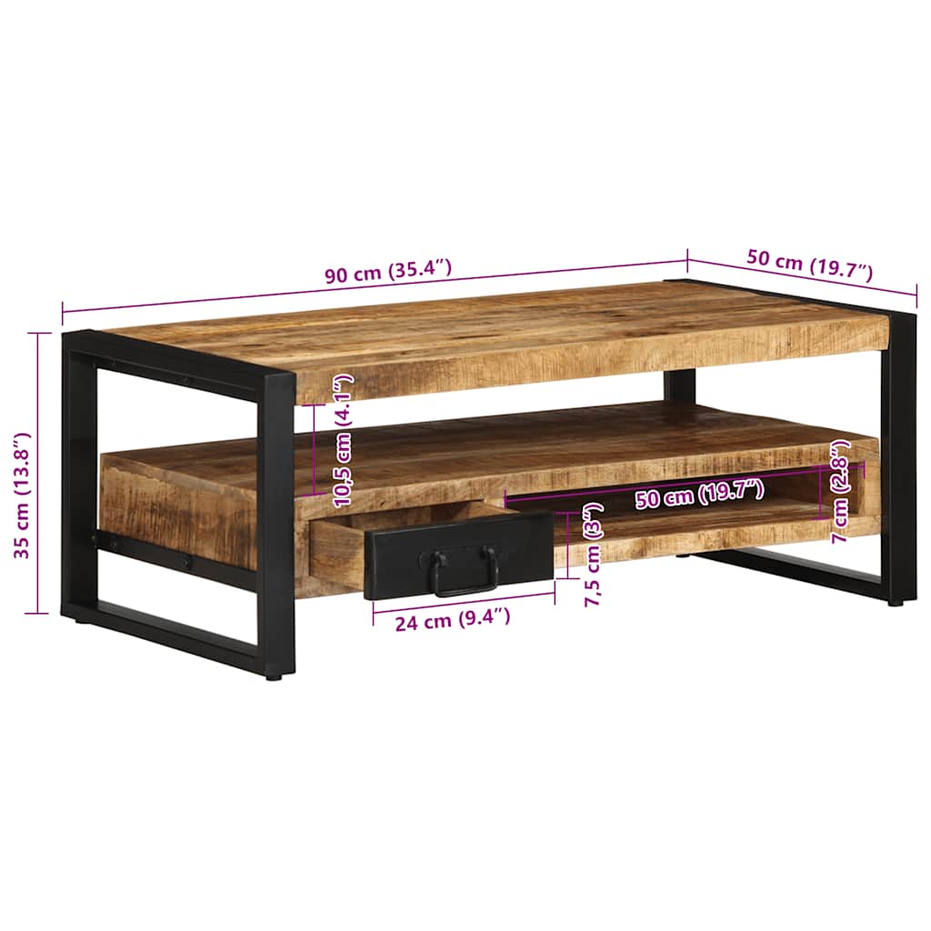 Măsuță de cafea, 90x50x36 cm, lemn masiv de mango brut