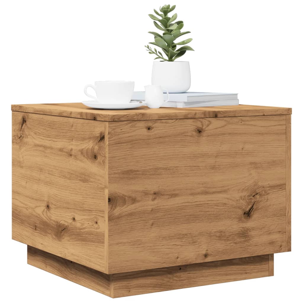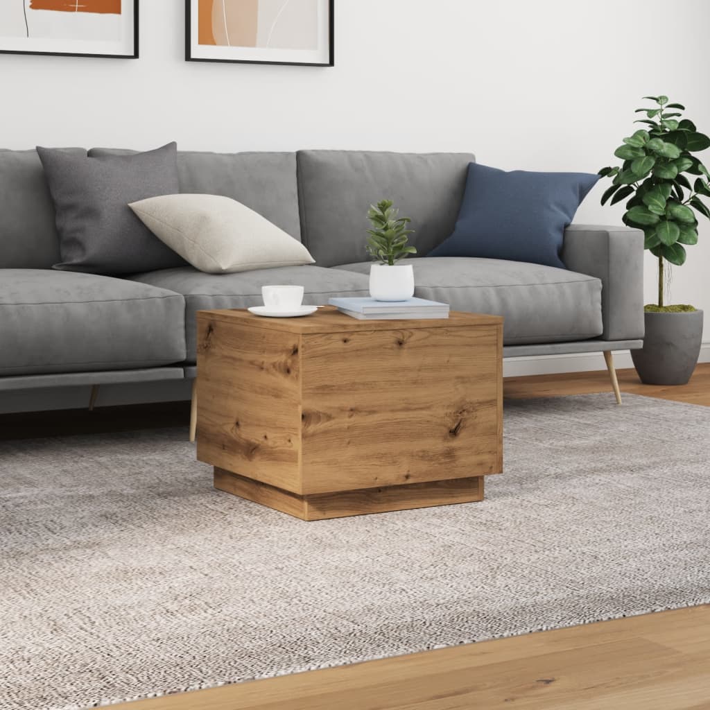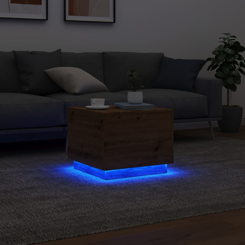 Măsuță de cafea cu lumini LED, stejar artizanal, 50x50x40 cm