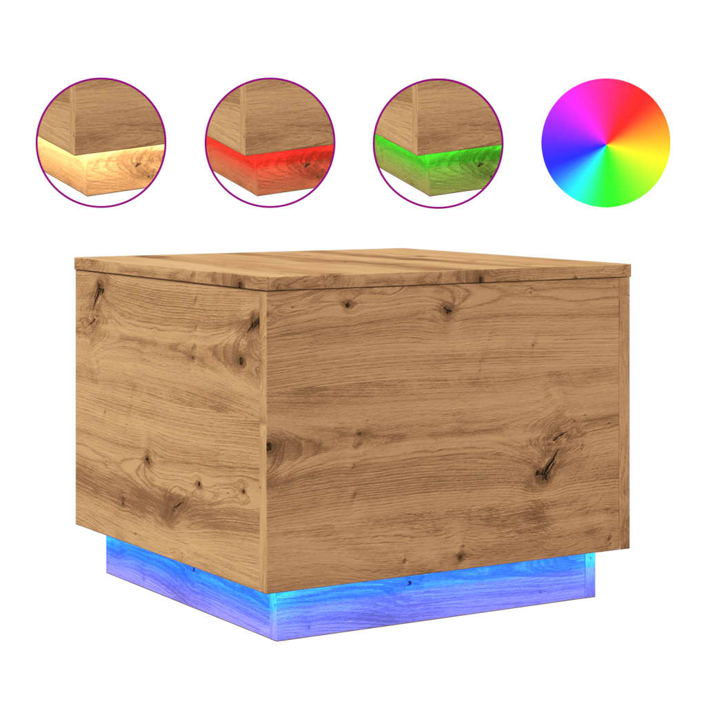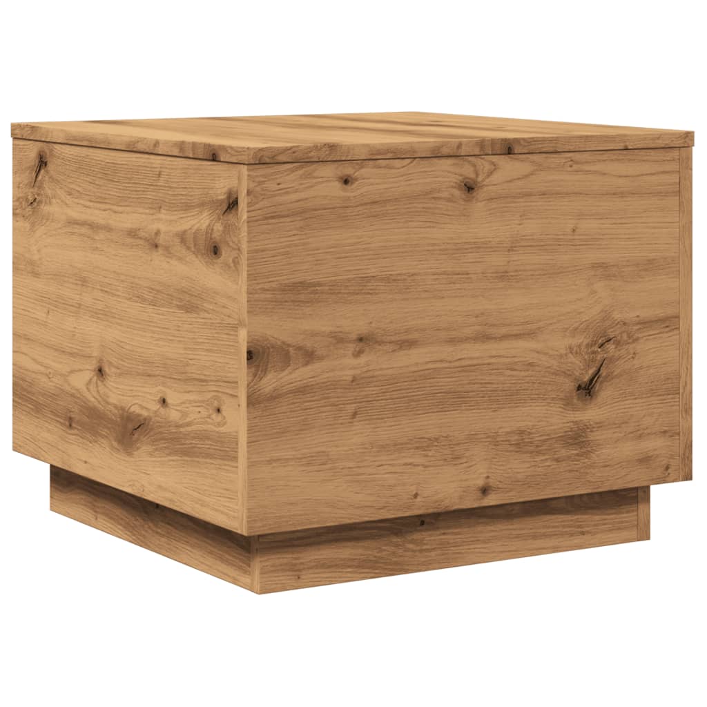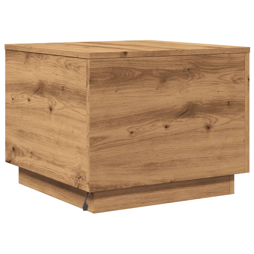 Măsuță de cafea cu lumini LED, stejar artizanal, 50x50x40 cm