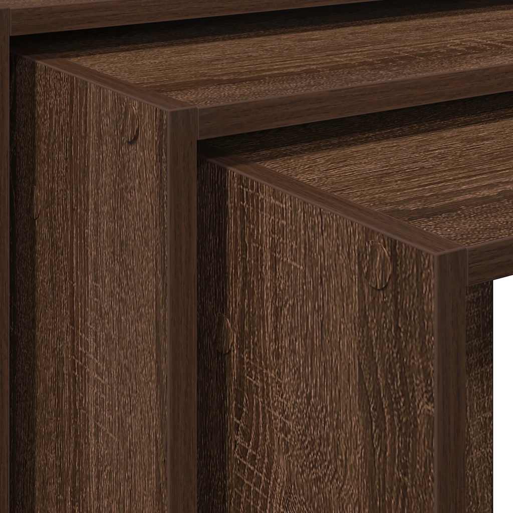 Măsuțe stivuibile, 3 buc., stejar maro, lemn prelucrat