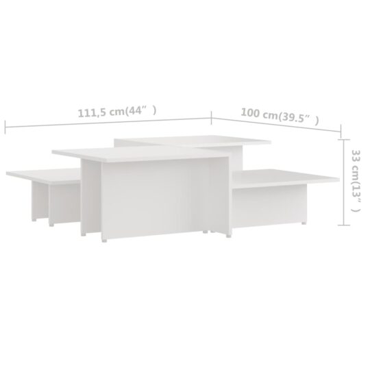 Mese de cafea, 2 buc., alb, 111,5x50x33 cm, lemn compozit
