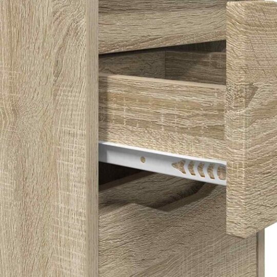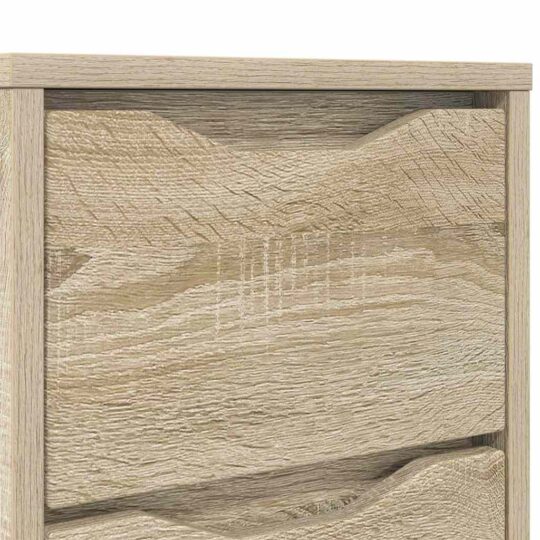 - Materiale: Confecționată din lemn prelucrat, noptiera asta e creată să reziste și să dureze. Lemnul prelucrat e ales pentru durabilitatea lui și face noptiera stabilă și rezistentă la umiditate. Această caracteristică asigură o structură robustă care își păstrează aspectul în timp, chiar și în condiții de umiditate variabilă, perfect pentru dormitoare.