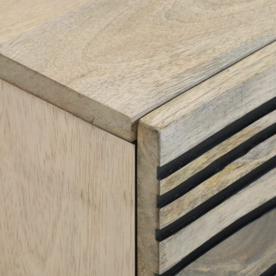 - Finisaj texturat: Suprafața fixă și tridimensională a noptierii dă o experiență plăcută, datorită meșteșugului de calitate. Finisajul texturat adaugă profunzime și creează un stil unic care scoate în evidență frumusețea lemnului de mango.
