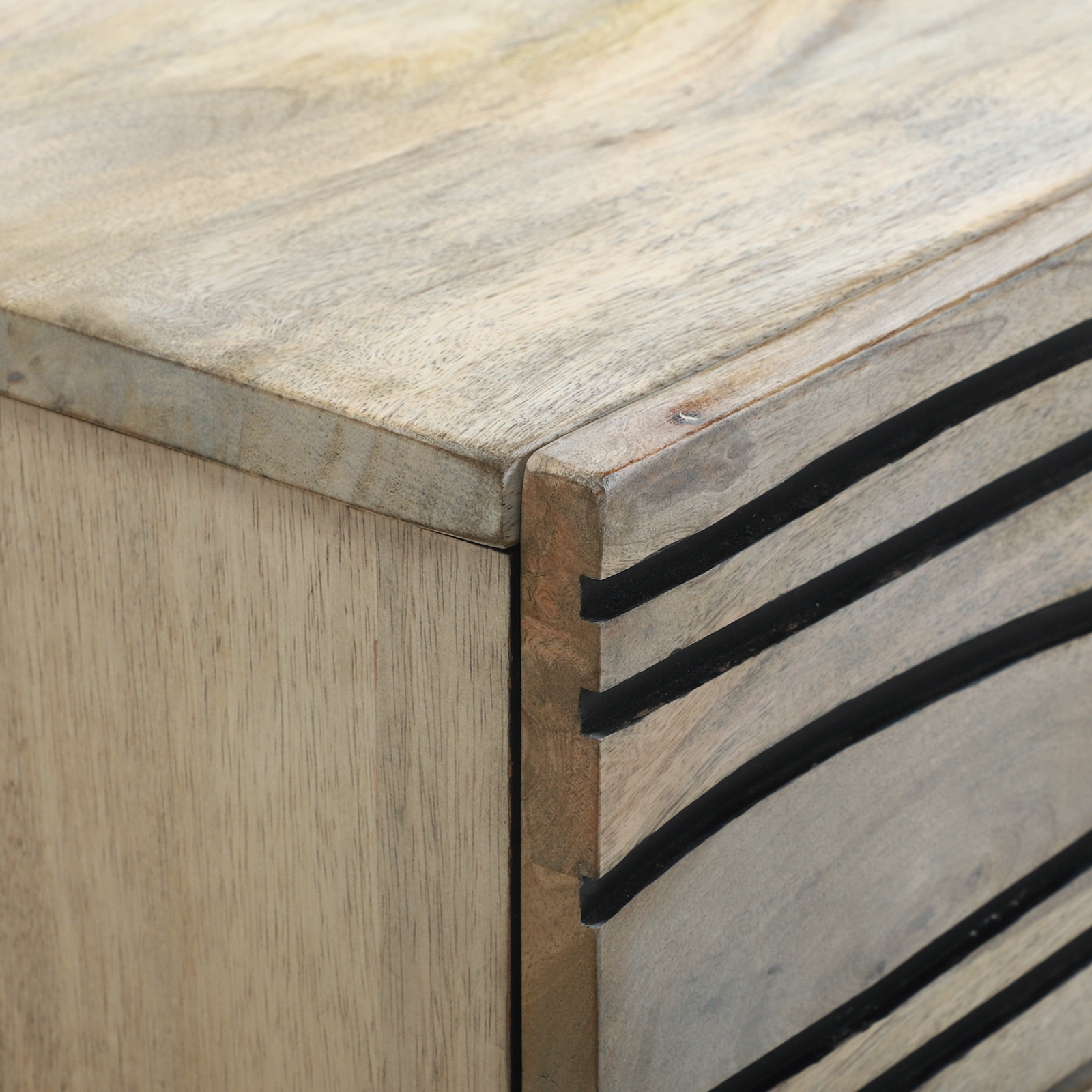 Noptiera din lemn de mango e un adevărat game-changer pentru orice dormitor. Forma sa elegantă și textura un pic ondulată adaugă un touch de stil. E super practică, are loc pentru lampă, ceas deșteptător sau o carte bună, făcând-o un tovarăș perfect pentru seara ta. Cu opțiuni excelente de depozitare și o construcție solidă, se potrivește în multe stiluri de dormitor și aduce un pic de sofisticare.