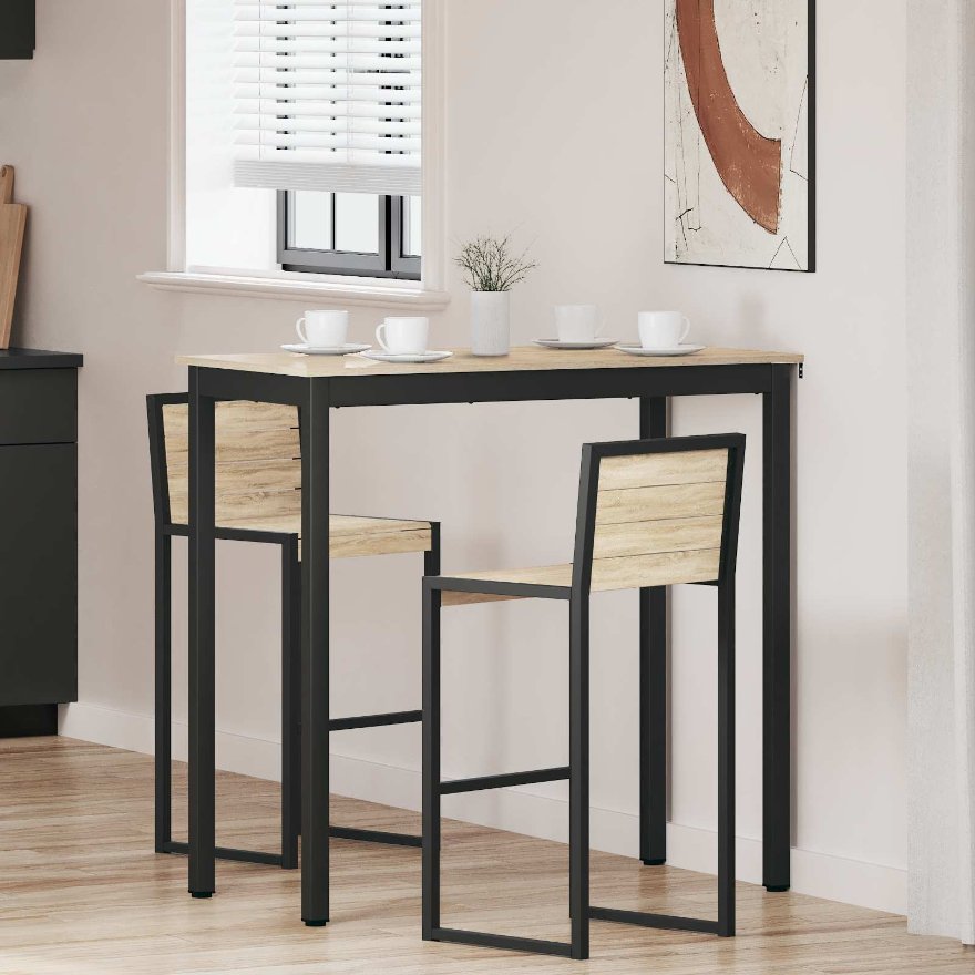 • Materiale solide: Masa e din lemn prelucrat, așa că e rezistentă și arată bine. Picioarele și cadrul metalic sunt robuste, asigurând stabilitate și un design elegant.