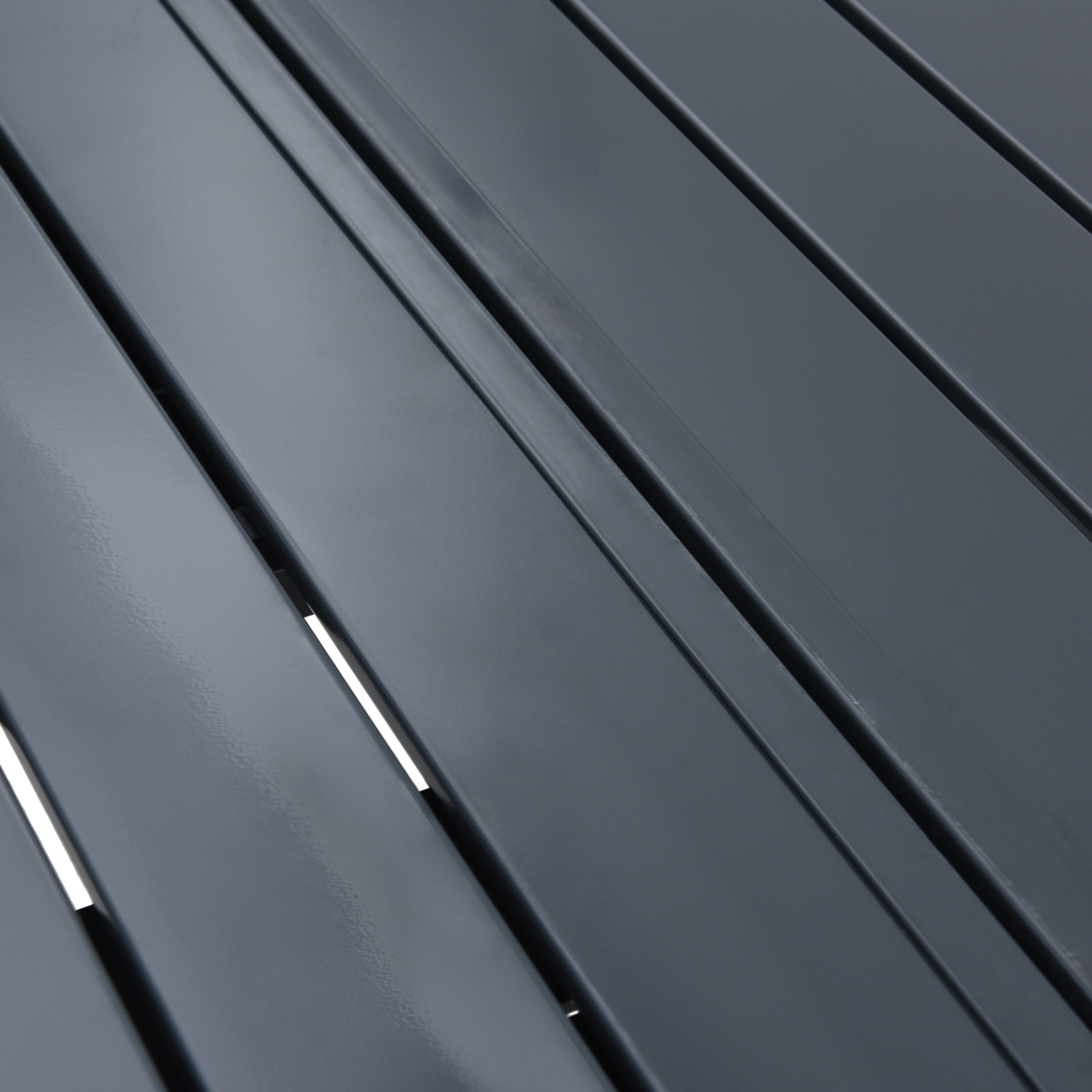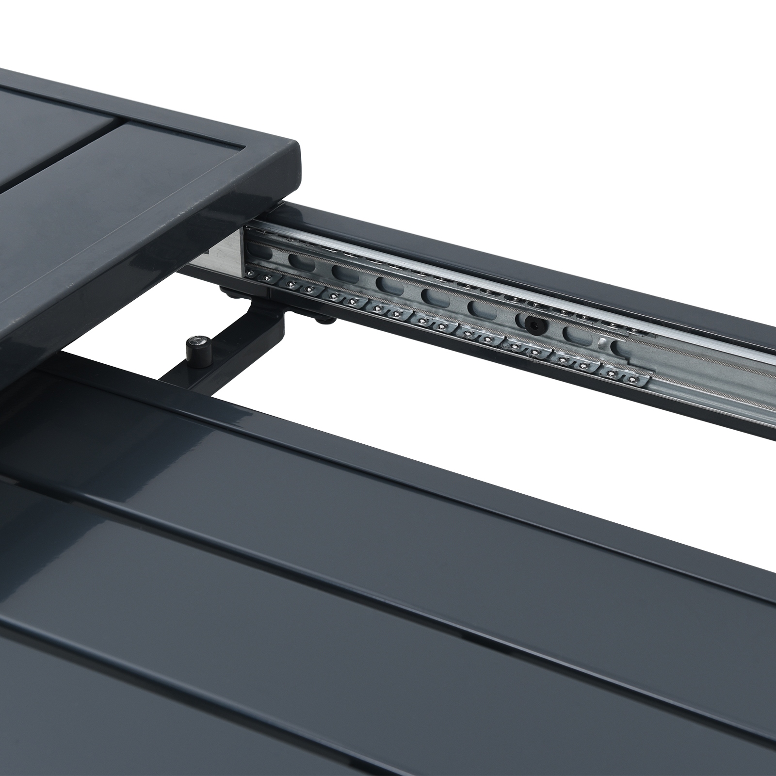 Masa de Extensie Modernă arată genial și e gândită să-ți îmbunătățească experiențele de afară. Adaugă un pic de eleganță în grădina sau terasa ta. Are formă dreptunghiulară și e ultra-flexibilă, perfectă pentru întâlniri mici sau petreceri mari, putând să acomodeze până la 10 invitați, în funcție de aranjament. Culoarea antracit aduce o vibrație modernă, integrându-se fain în teme minimaliste sau industriale, dar rămâne totuși un punct de atracție în spațiul tău exterior.