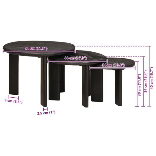 Setul ăsta de mese de cafea nesting e ideal pentru cei care iubesc stilul modern, punând accent pe simplitate și funcționalitate. Foarte bine făcute pentru living-uri contemporane, oferă o soluție elegantă pentru a expune băuturi, reviste, cărți și decorațiuni, adaptându-se la diverse nevoi de spațiu prin capacitățile de nesting.