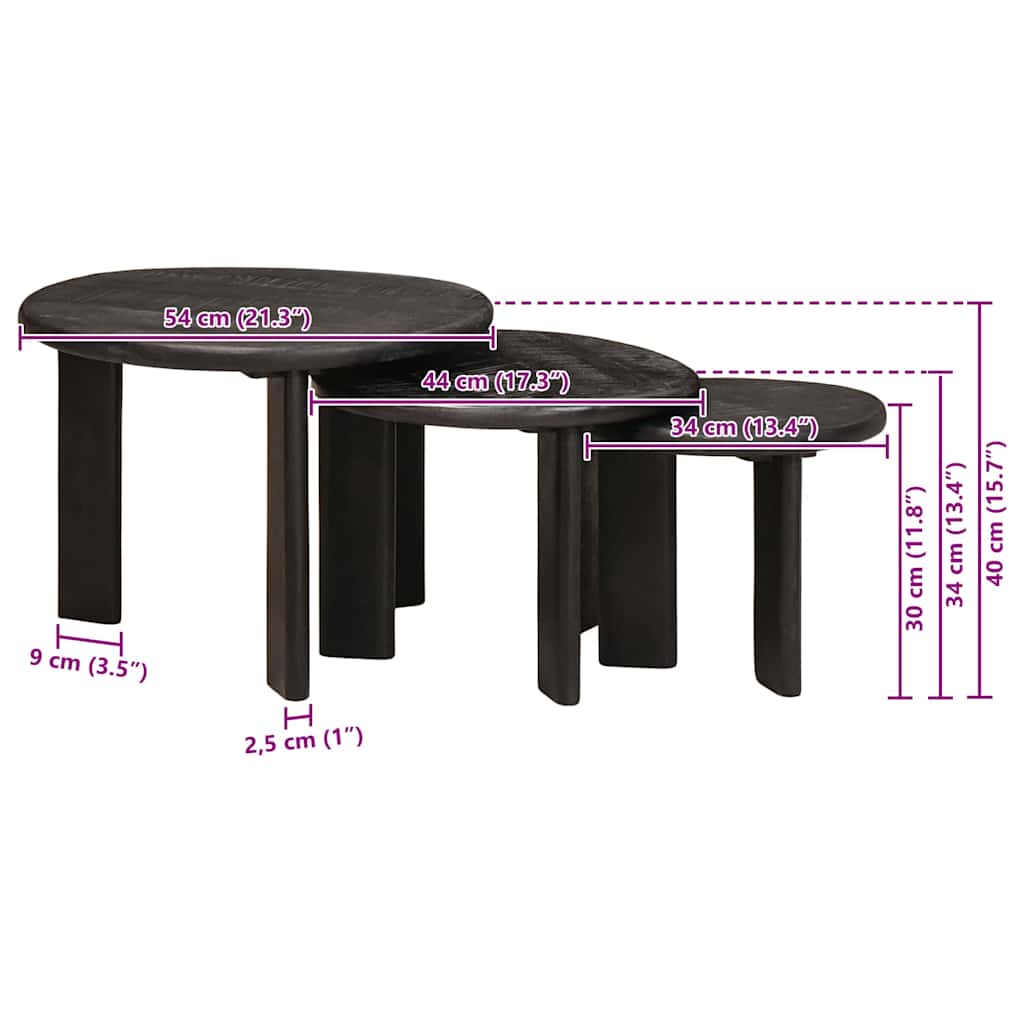 Mese în cuiburi 3 pcs Alb Lemn de mango solid