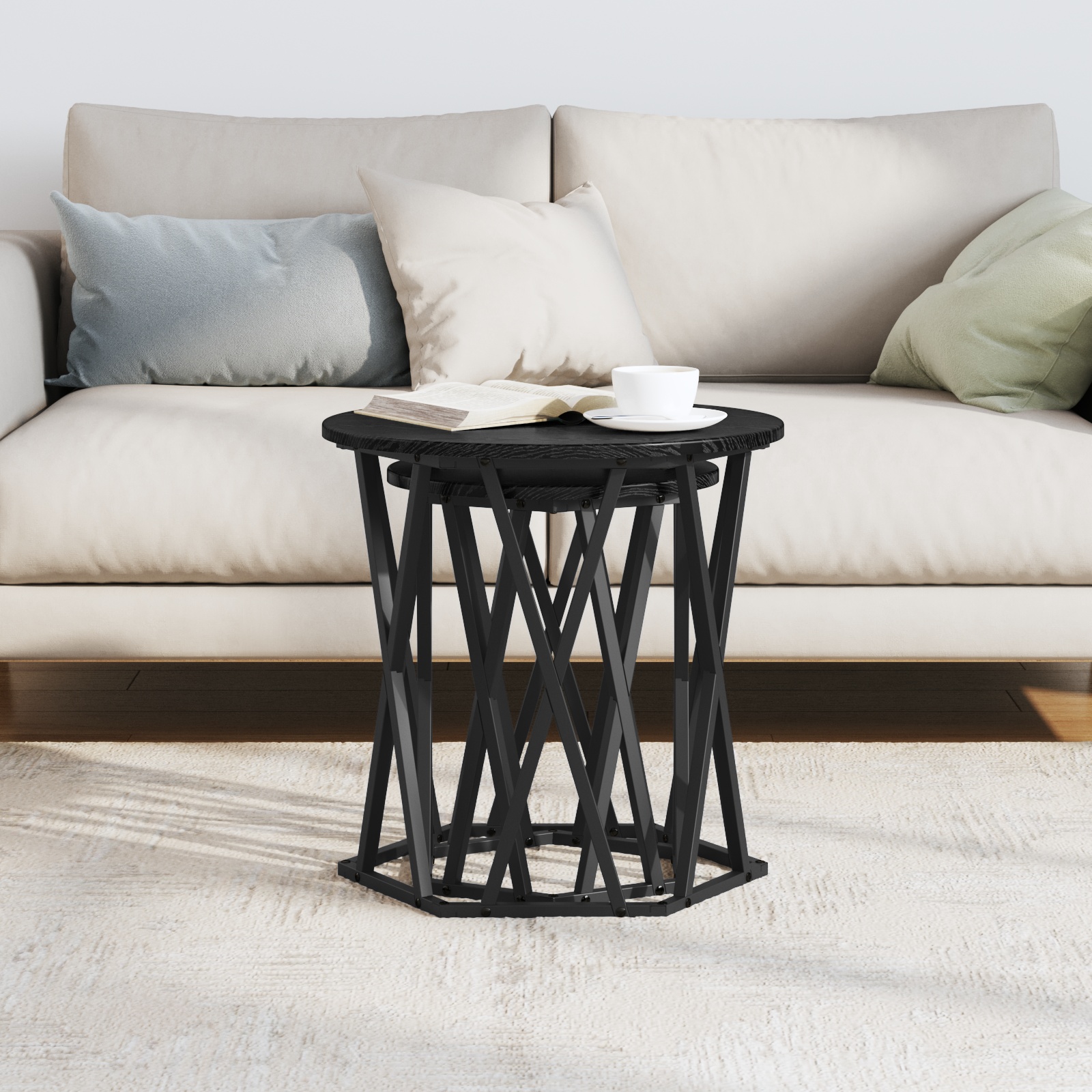 Verifică masa asta de cafea rotundă moderna – e cu adevărat piesa centrală pentru camera ta! Cu liniile ei clare și designul inteligent, aduce o notă de eleganță în orice cameră. Finisajul mat și cadrul negru chic o fac să strălucească. În plus, oferă mult spațiu pentru băuturi și diverse lucruri, devenind un must-have pentru a-ți menține livingul ordonat și stylish.