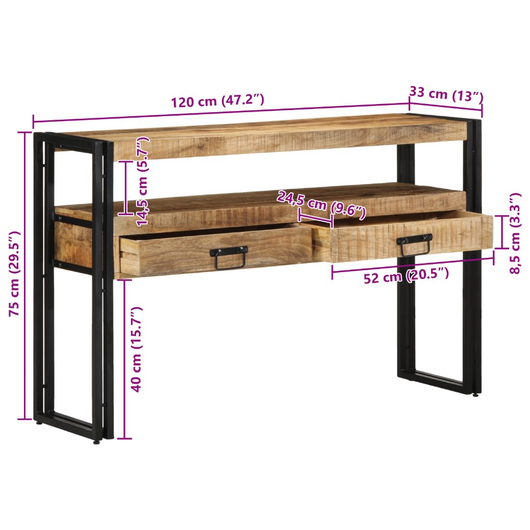 Masă de consolă Maro 120 x 33 x 75 cm Lemn masiv de mango