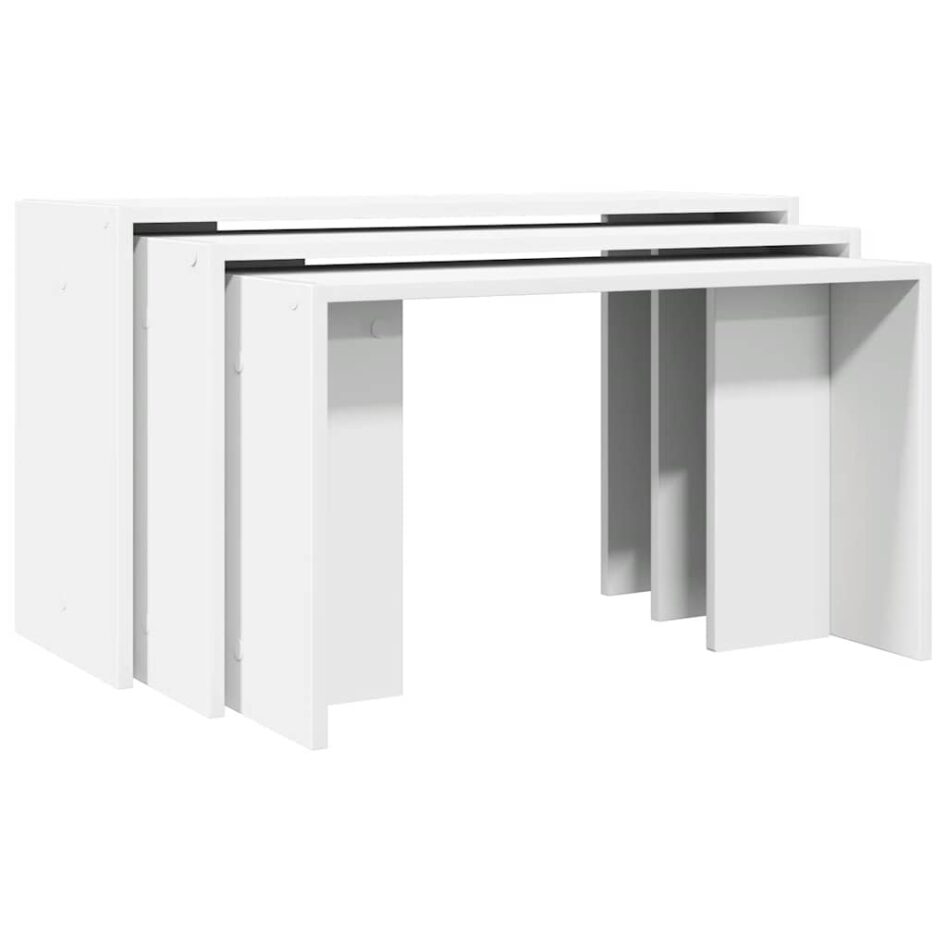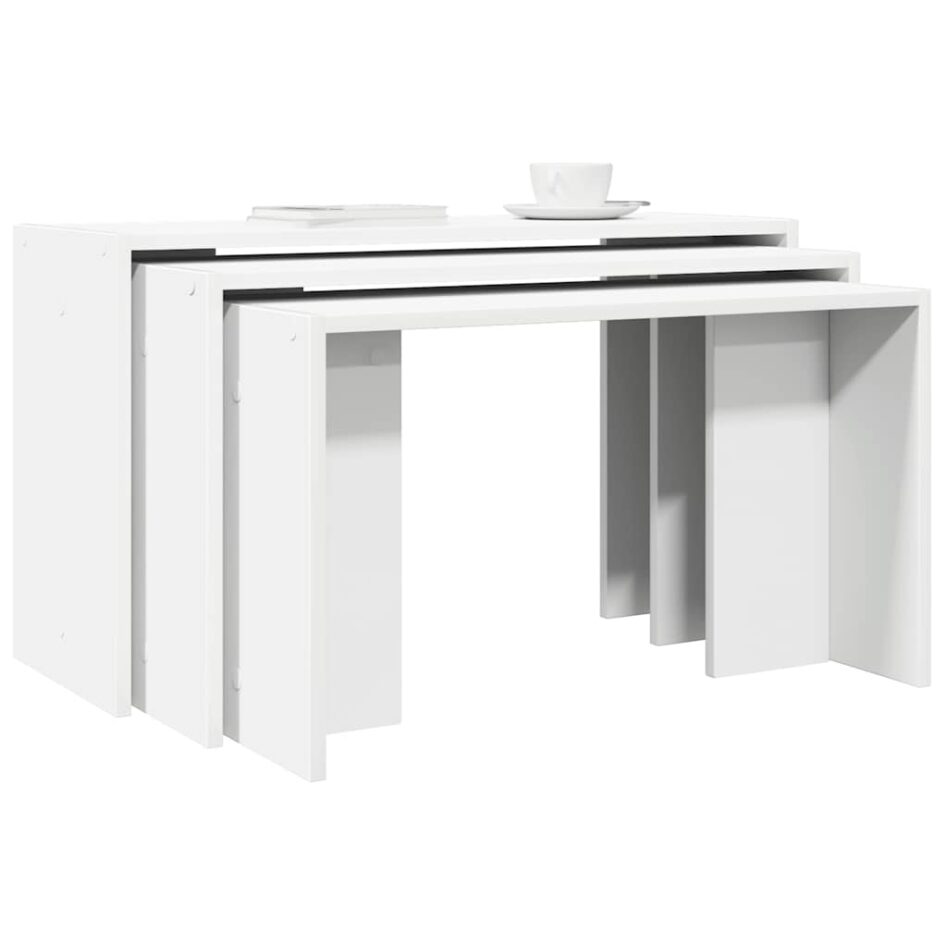 Mese suprapuse, 3 buc., alb, lemn prelucrat
