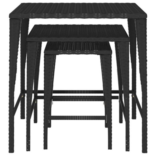 Mese suprapuse de grădină, 3 buc, negru, poliratan