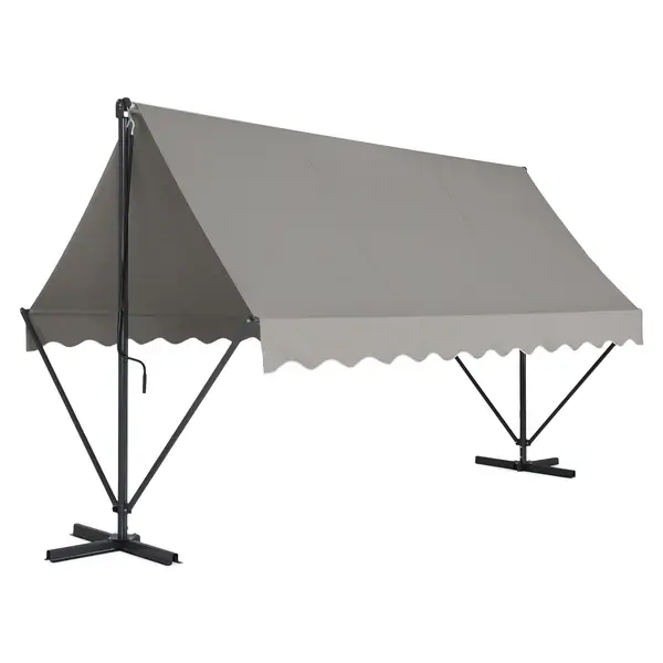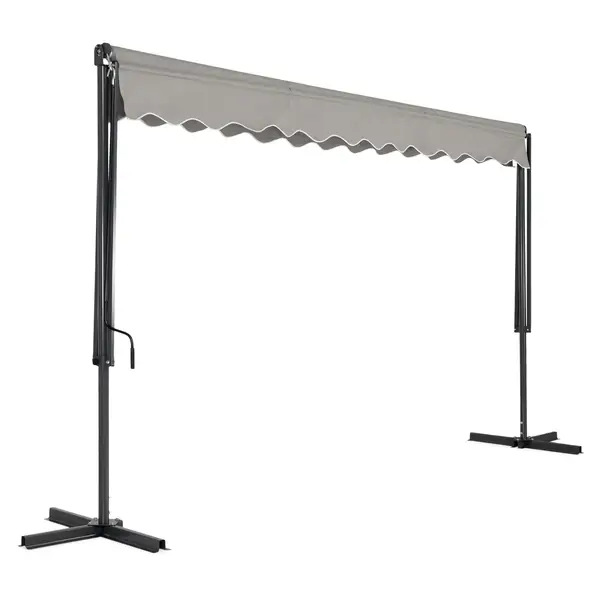 Marchiză Nancy. Marchiza vă permite să petreceți timp în aer liber împreună cu familia sau prietenii, fără să vă face griji pentru vremea ploioasă sau soarele intens. Marchiza cu acționare manuală, realizată din poliester cu protecție împotriva umezelii și decolorării, vă oferă prilejul de a vă bucura de activități în curtea voastră indiferent de vreme.