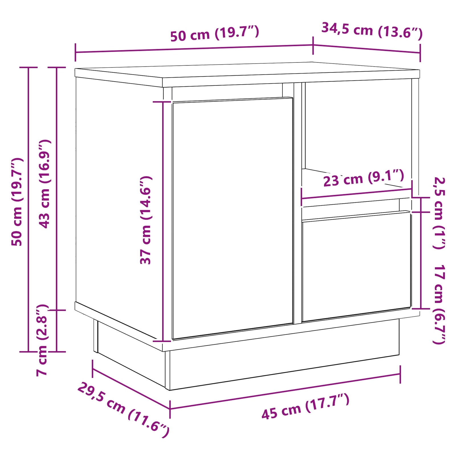 - Dimensiuni generale: 50 x 34.5 x 50 cm (L x l x î)