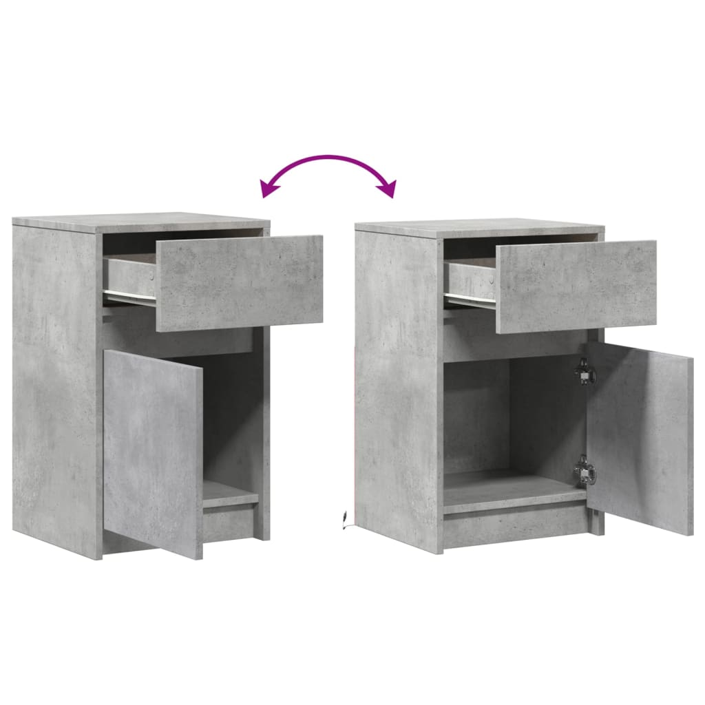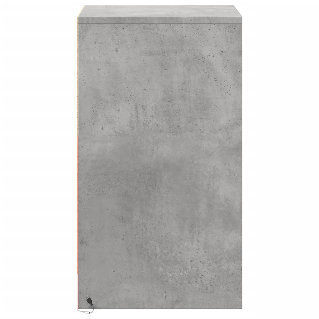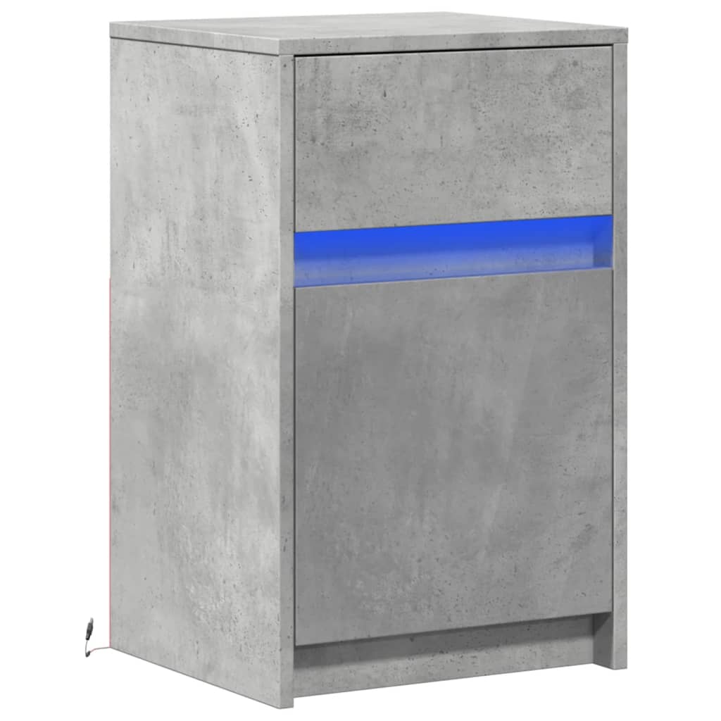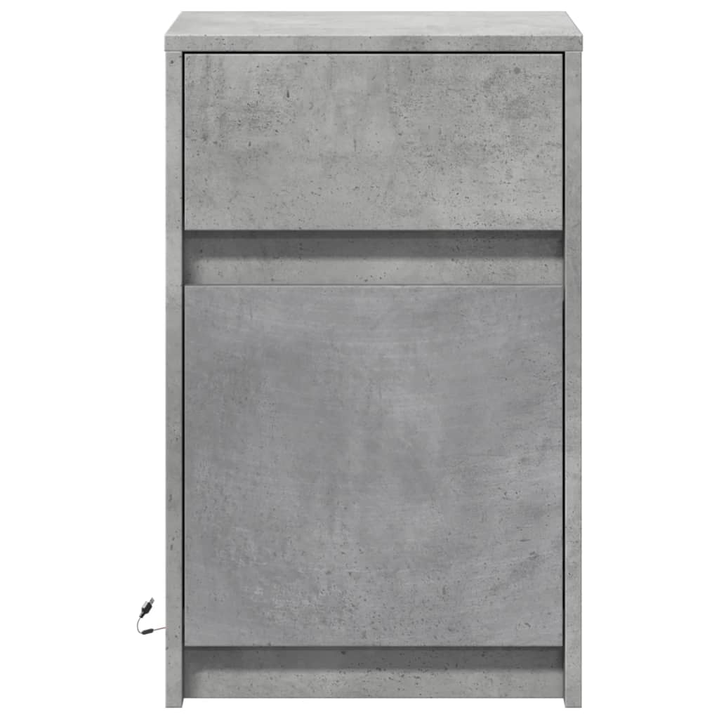 Noptieră cu lumini LED, gri beton, lemn prelucrat