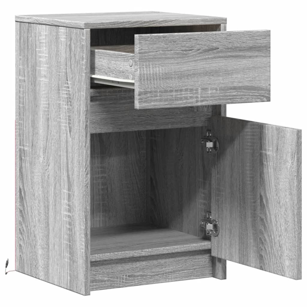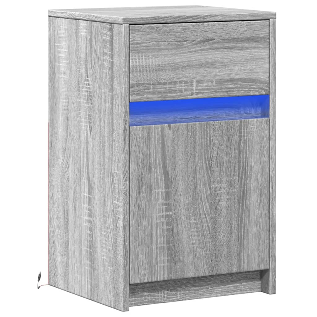 Noptieră cu lumini LED, sonoma gri, lemn prelucrat
