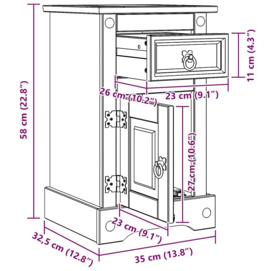 Noptieră cu sertar Alb 35 x 32,5 x 58 cm Lemn de pin masiv