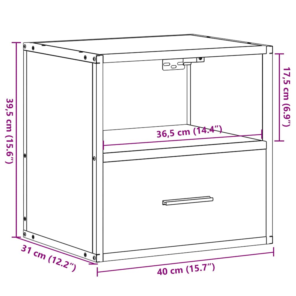 Noptieră de perete, stejar fumuriu, 40x31x39,5 cm