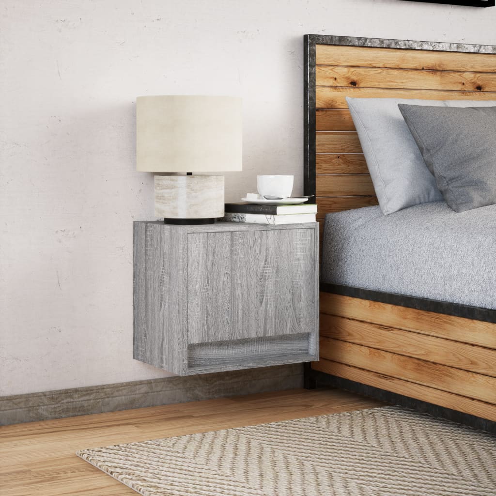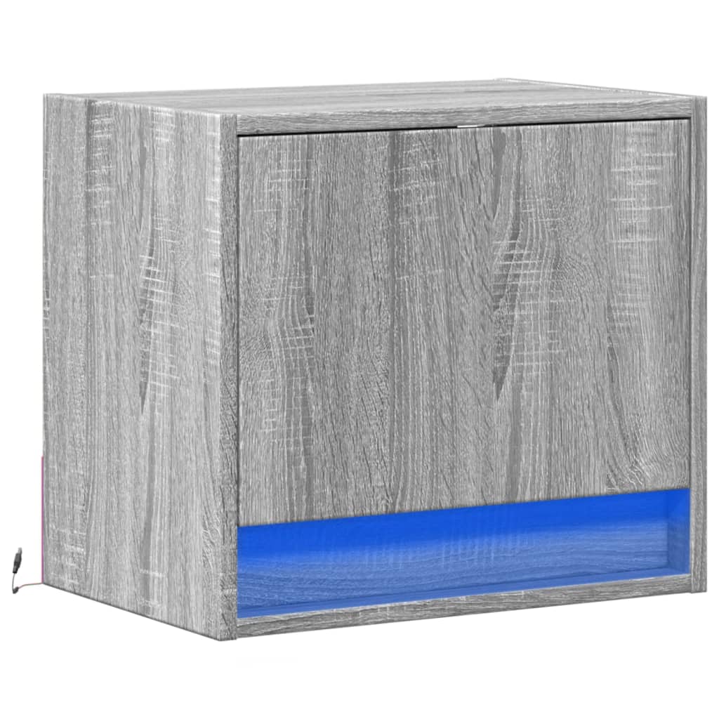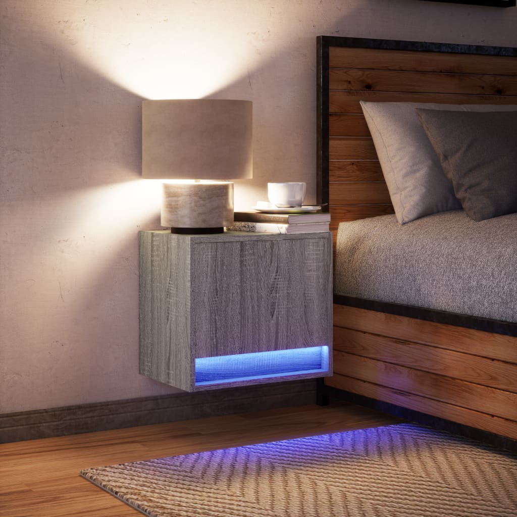 Noptieră montată pe perete cu lumini LED, sonoma gri
