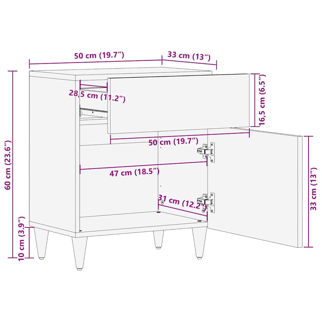 - Construcție din Lemn Masiv de Mango: Făcută din lemn masiv de mango, noptiera asta e solidă și rezistă în timp. Finisajul natural al lemnului nu doar că o face puternică, dar și arată genial.