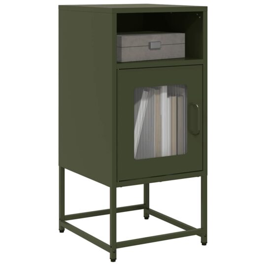 Noptieră, verde măslină, 36x39x78 cm, oțel laminat la rece