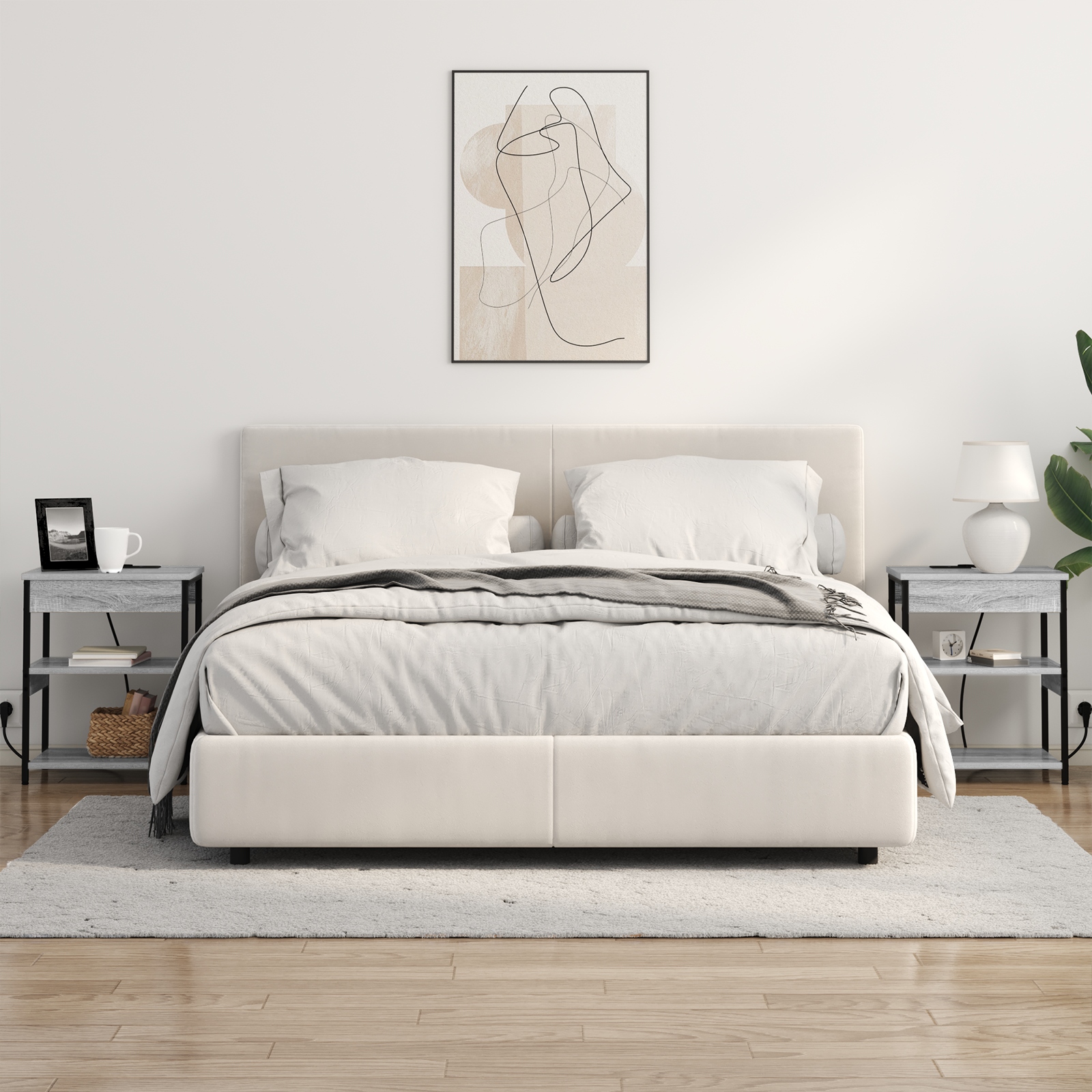 • Funcții / Design: Dincolo de silueta sa sofisticată, noptiera integrează prize funcționale, creând o stație de încărcare practică care fac alimentarea dispozitivelor convenabilă și fără dezordine. Integrarea fără cusur a caracteristicilor susține stilurile de viață contemporane, făcând din noptieră o utilitate indispensabilă care se potrivește în orice aranjament de locuit modern.