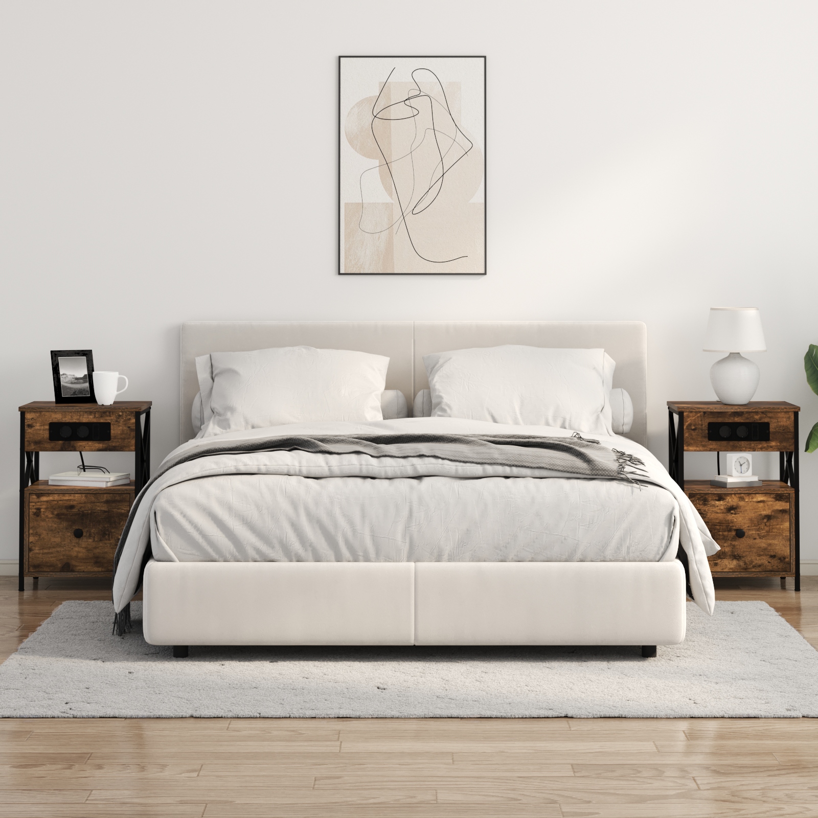 Dulap de noapte cu sertar 2 pcs Stejar afumat 40 x 31 x 60 cm