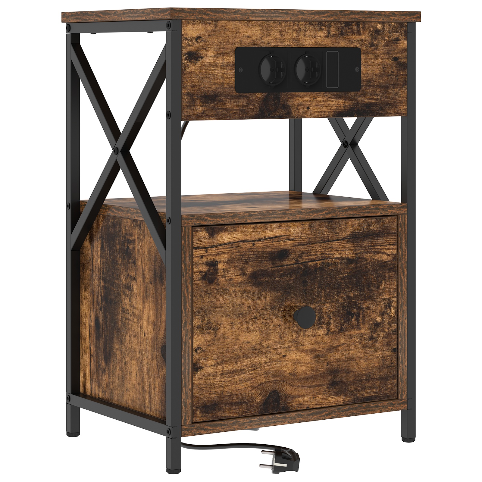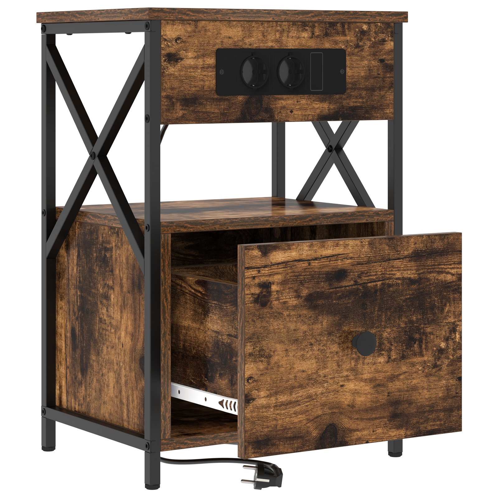 • Materiale de calitate: Construită din lemn prelucrat pentru utilizare de lungă durată, această noptieră combină rezistența cu estetică elegantă. Finisajul texturat al suprafeței, combinat cu un cadru din oțel, oferă o fundație structurală robustă care rezistă uzurii zilnice menținându-și în același timp atractivitatea stilistică.