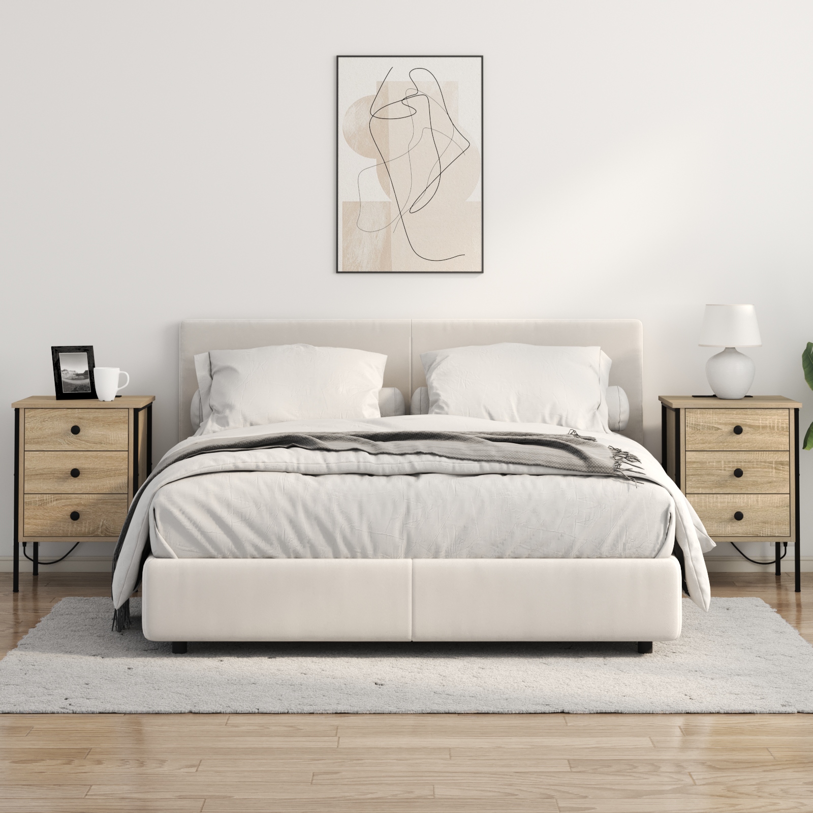 - Caracteristici: Are o stație de încărcare super utilă, așa că îți poți încarcă gadgeturile cu ușurință. Cu mult loc de stocare, e clar că ai loc pentru tot ce îți trebuie, de la lampă de citit la micile esențiale de pe noptieră.