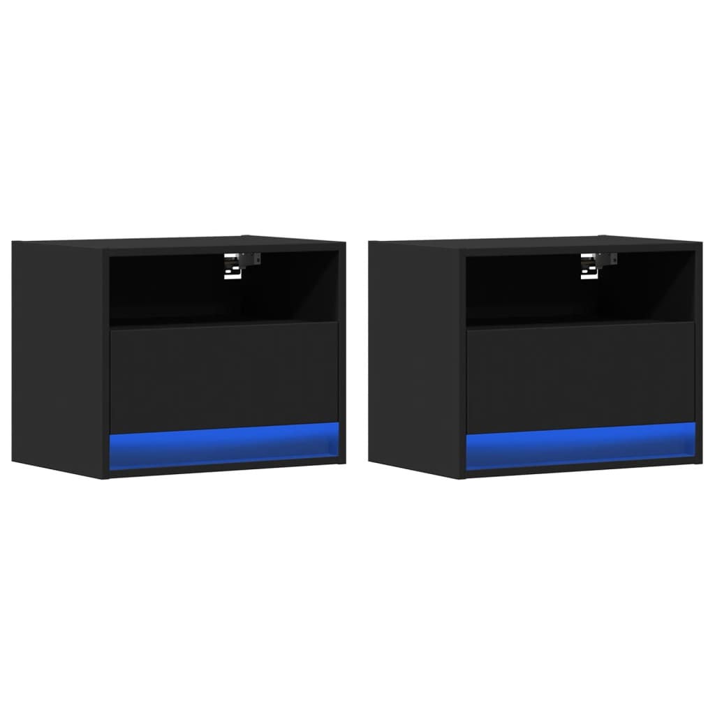 Noptiere montate pe perete cu lumini LED, 2 buc., negru