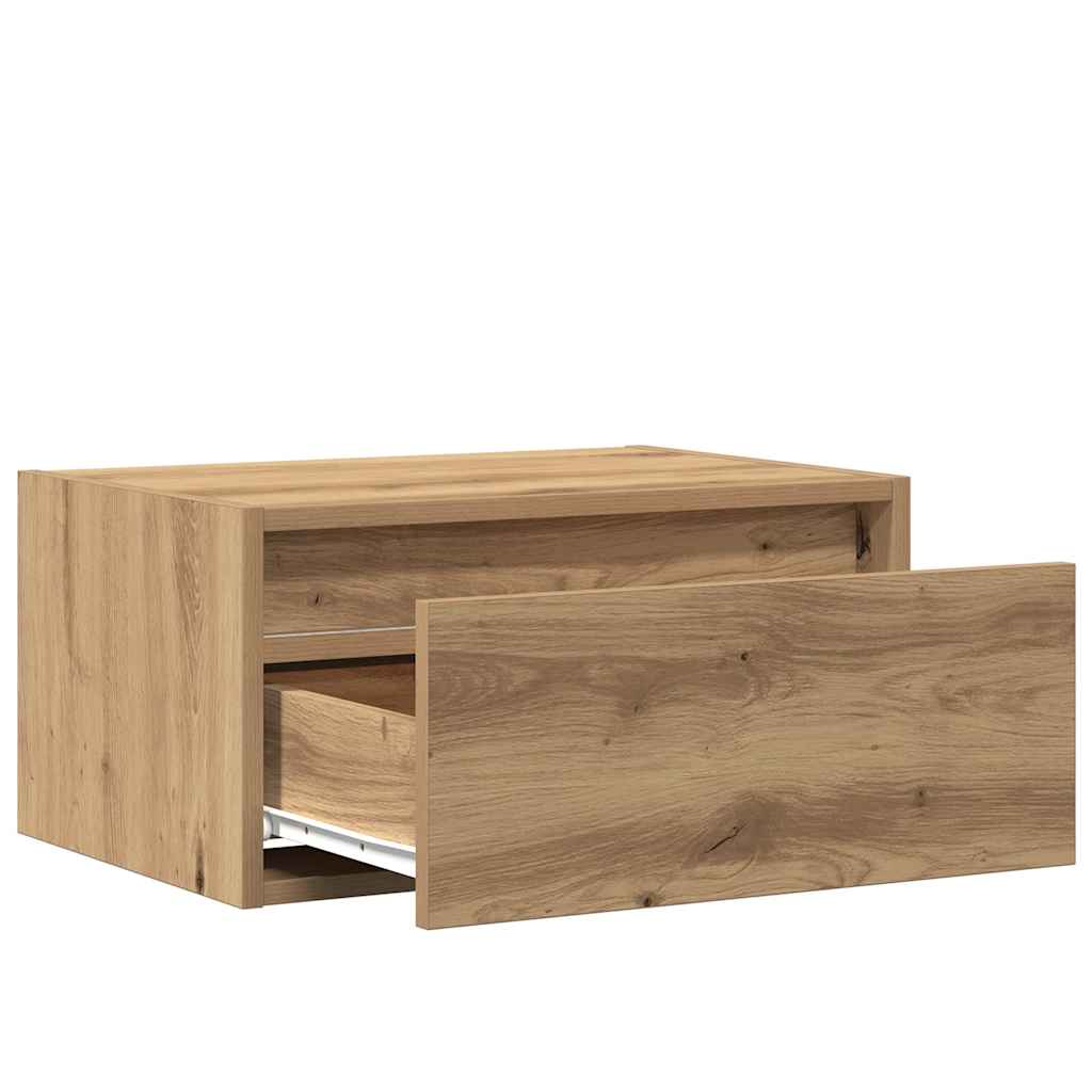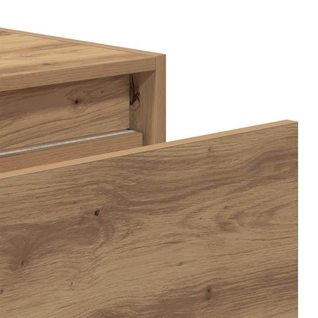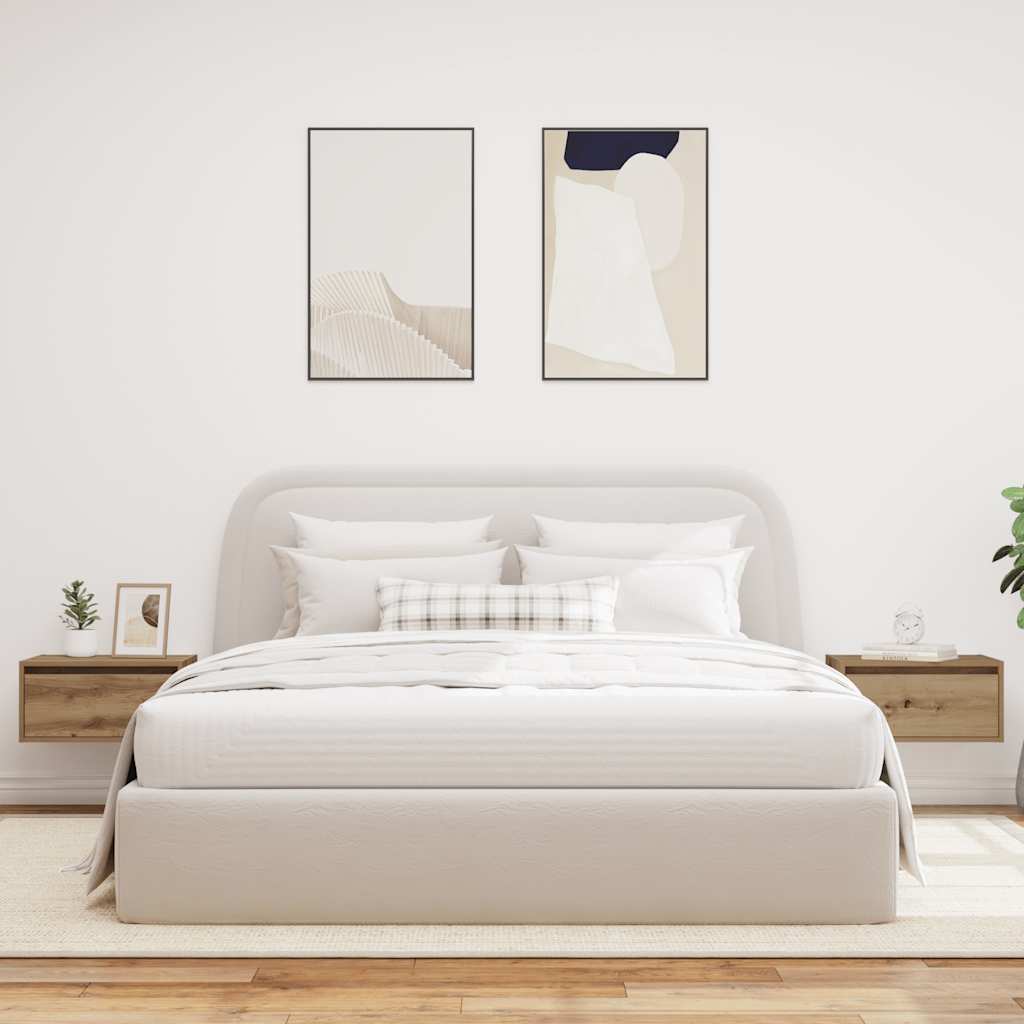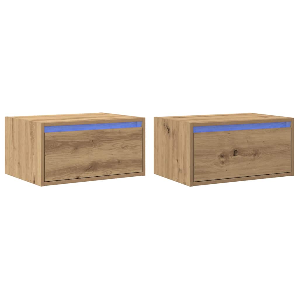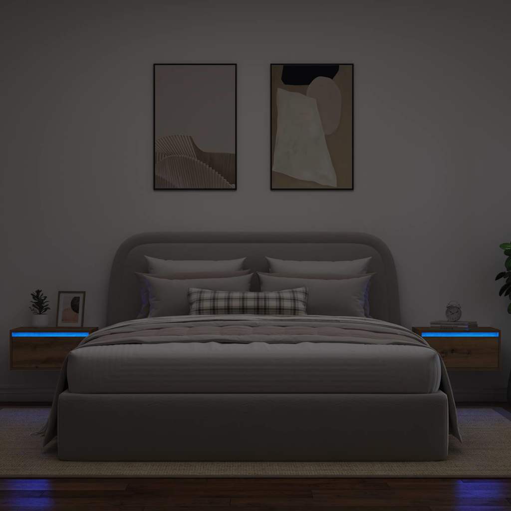 Noptiere montate pe perete cu lumini LED 2 buc Stejar Artizanal