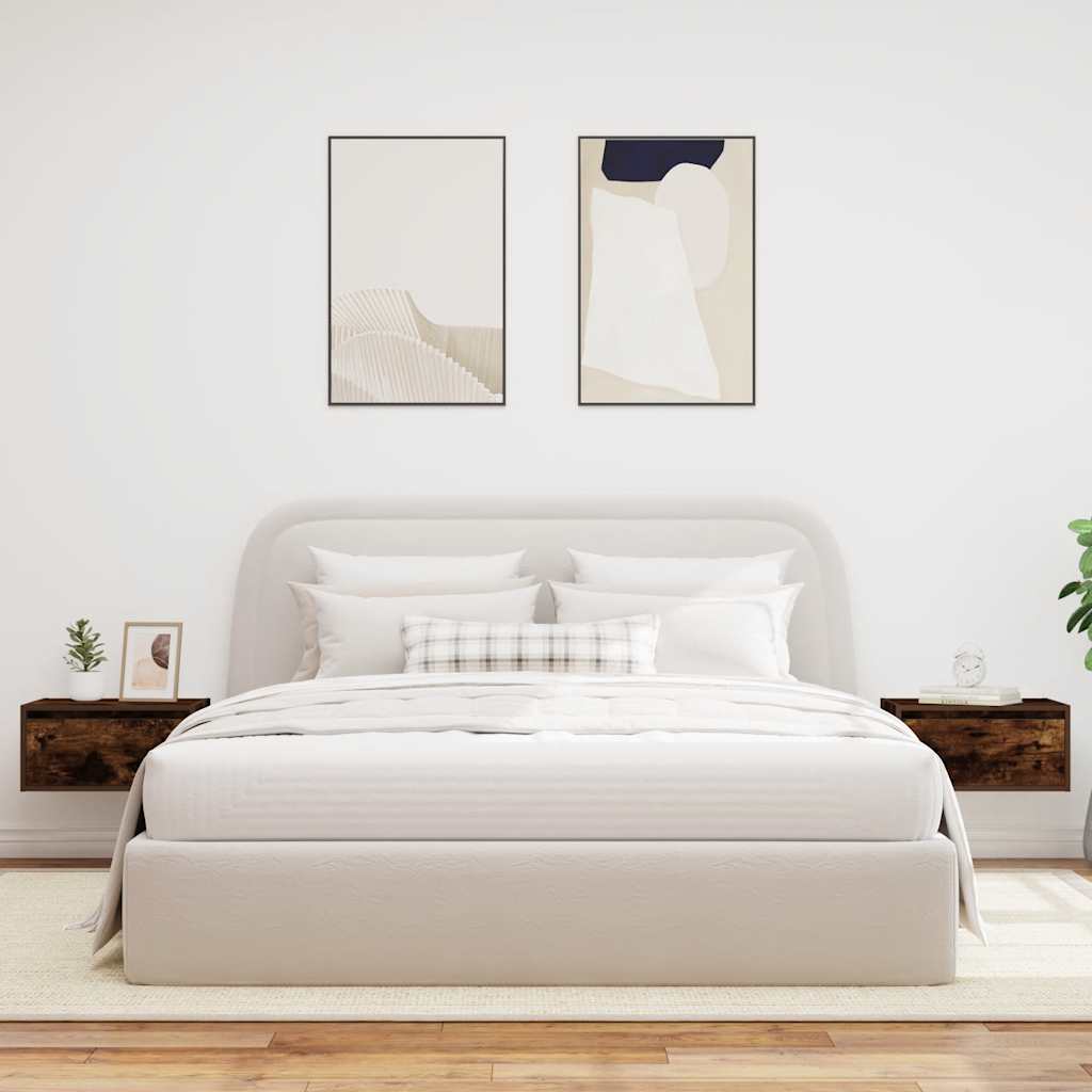 Noptiere montate pe perete cu lumini LED, 2 buc.,stejar fumuriu