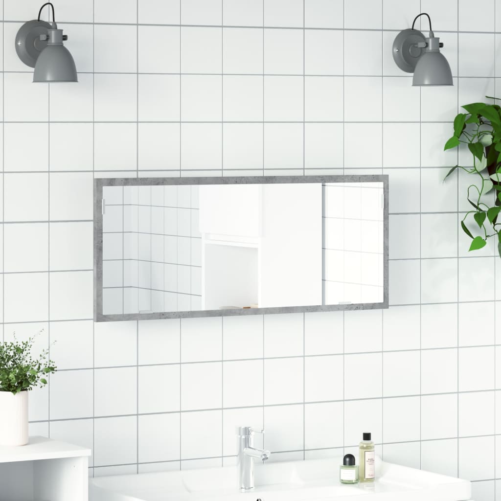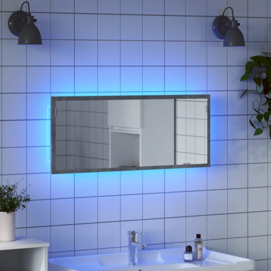 Oglindă de baie cu LED, gri beton, 100×8,5x37cm, lemn prelucrat