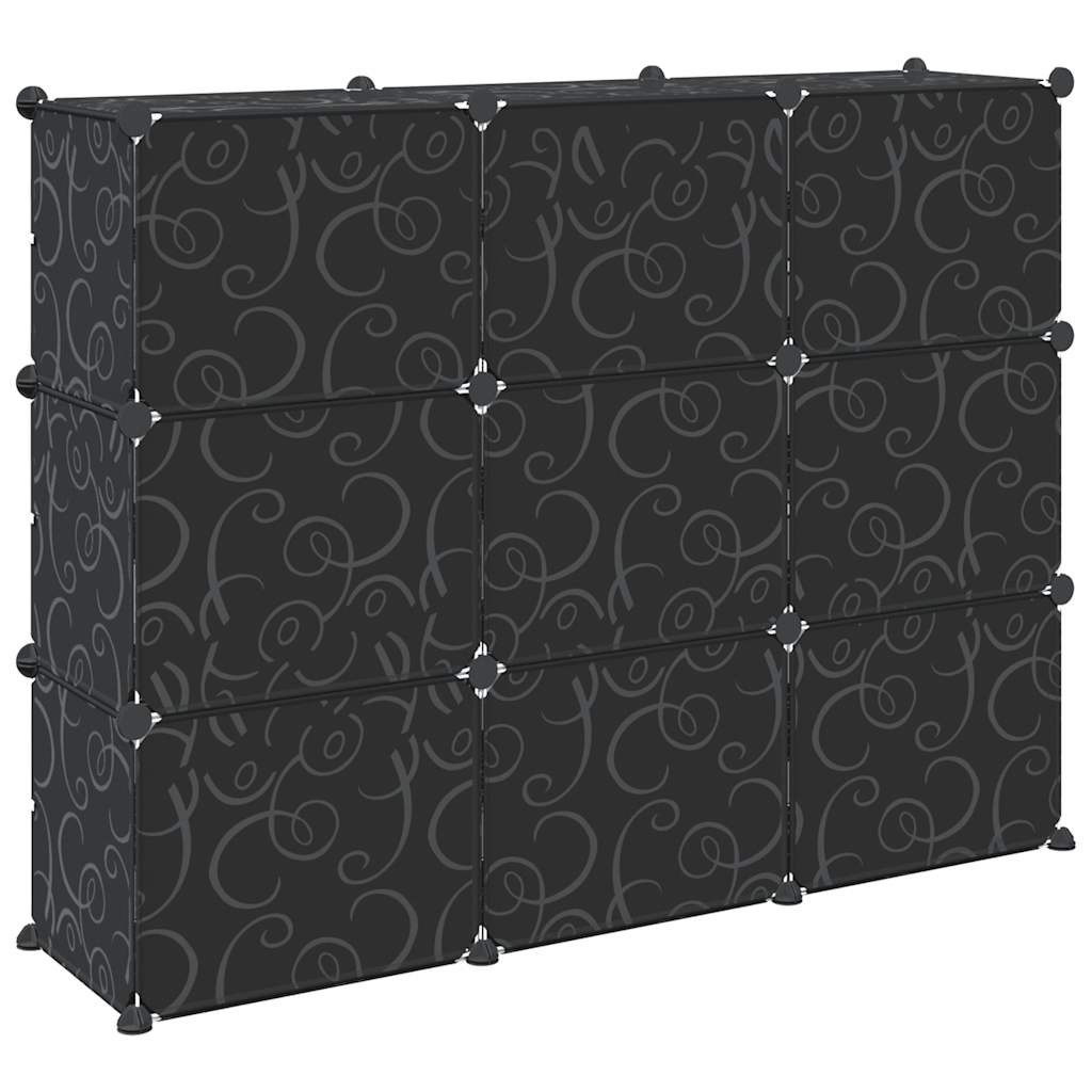 Organizator cub de depozitare cu 9 cuburi și uși PP negru