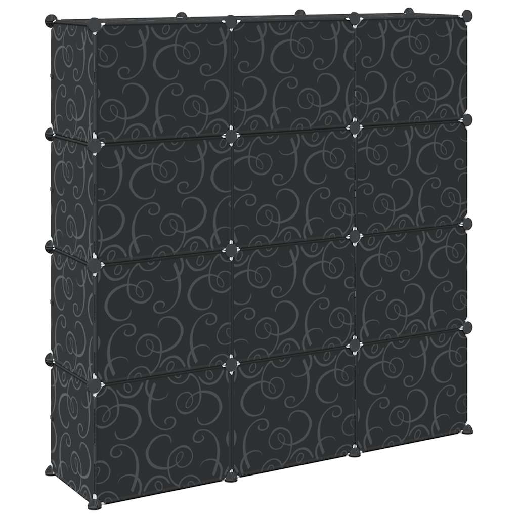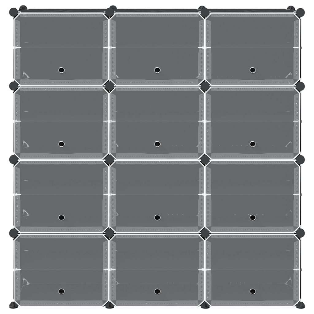 Organizator cub de depozitare cu uși, 12 cuburi, negru, PP
