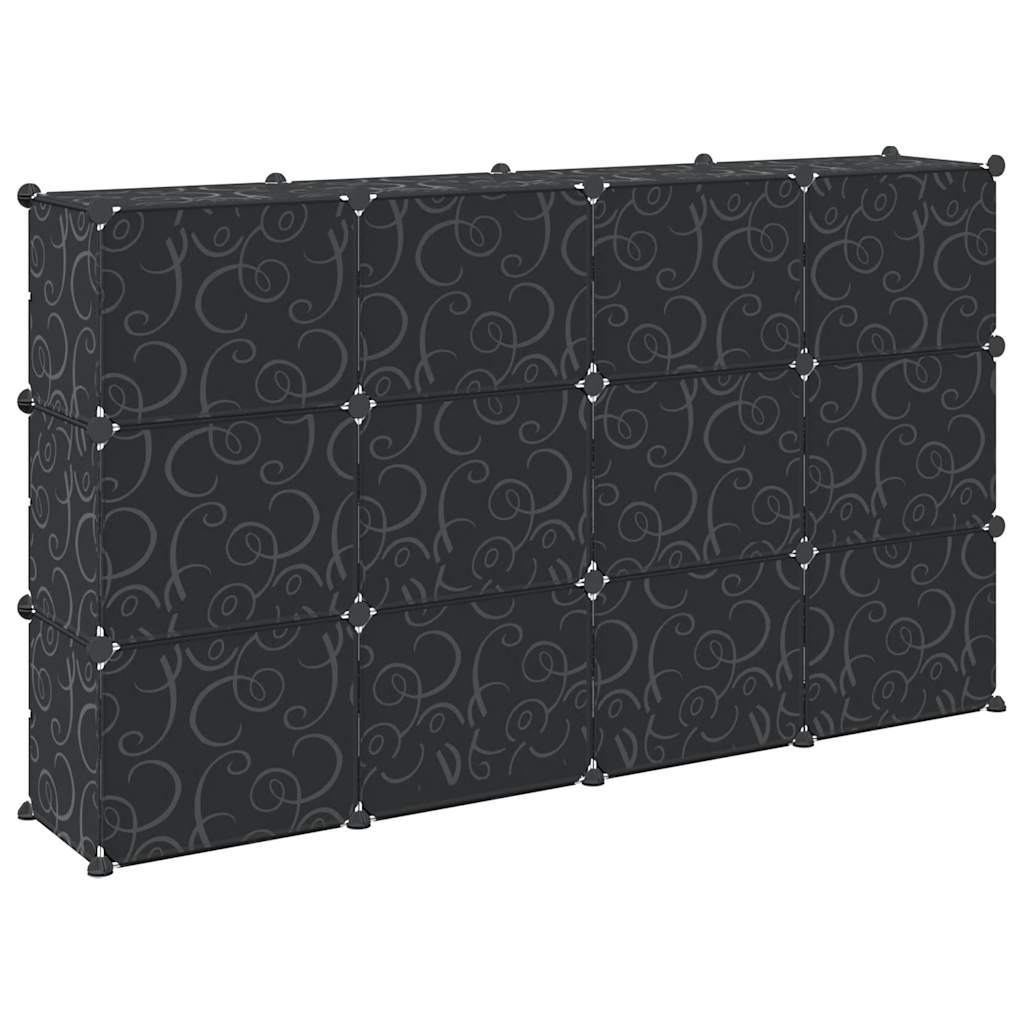 Organizator cub de depozitare cu uși, 12 cuburi, negru, PP