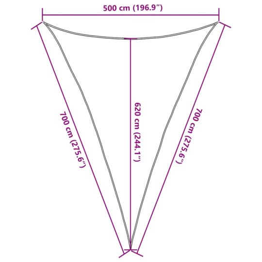 Pânză parasolar, teracotă, 5x7x7m, HDPE, 160 g/m², triunghiular