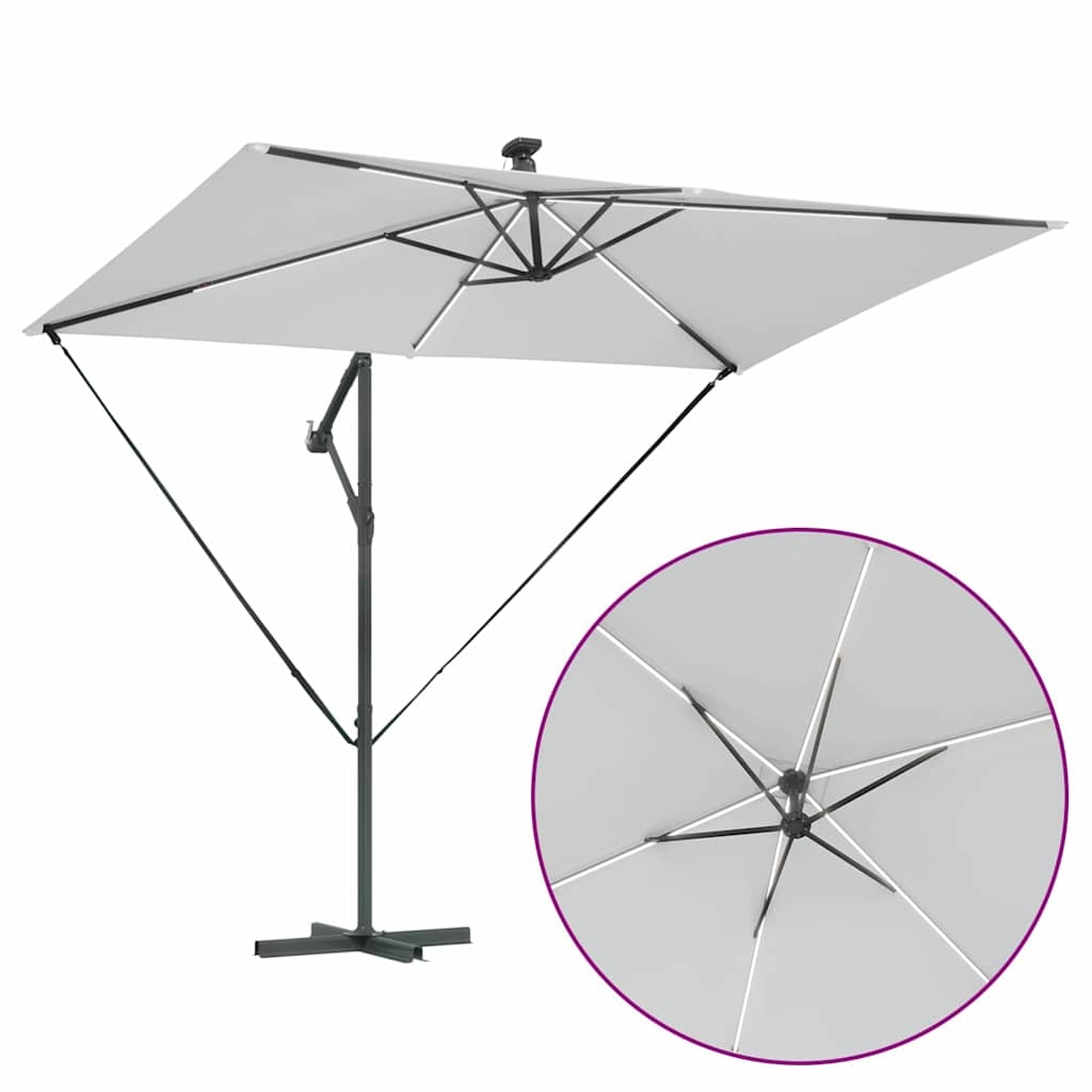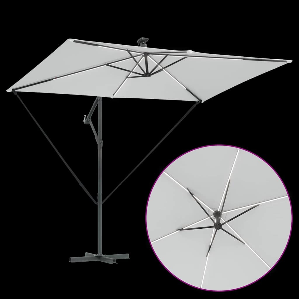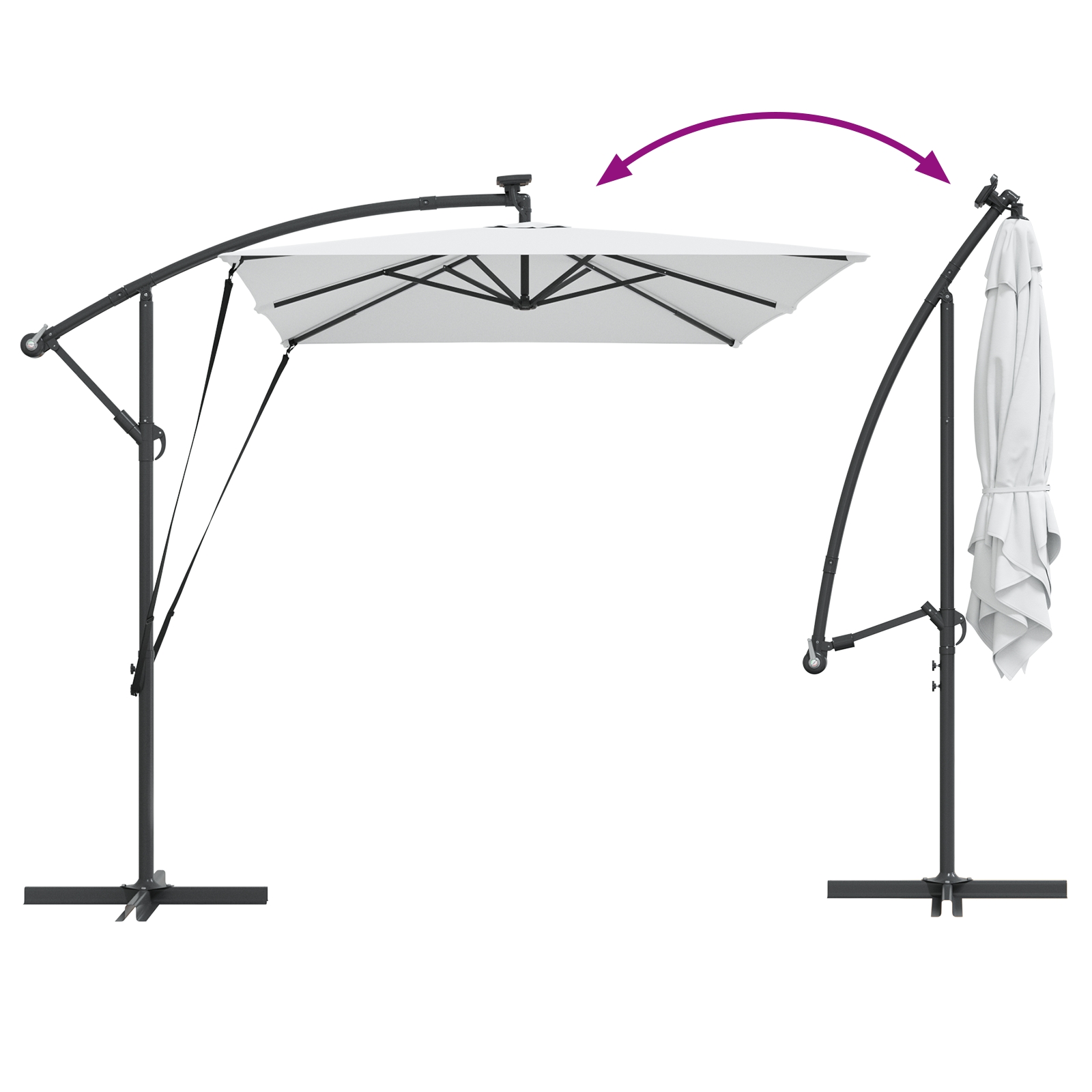 • LED-uri cu Energie Solară: Creat pentru plăcerea serii, acest parasol include iluminare LED strălucitoare și prietenoasă cu mediul, alimentată de energie solară. Indiferent dacă organizezi o cină în grădină sau o conversație în timpul nopții, atmosfera călduroasă creată îmbunătățește orice experiență în aer liber pe timp de noapte.