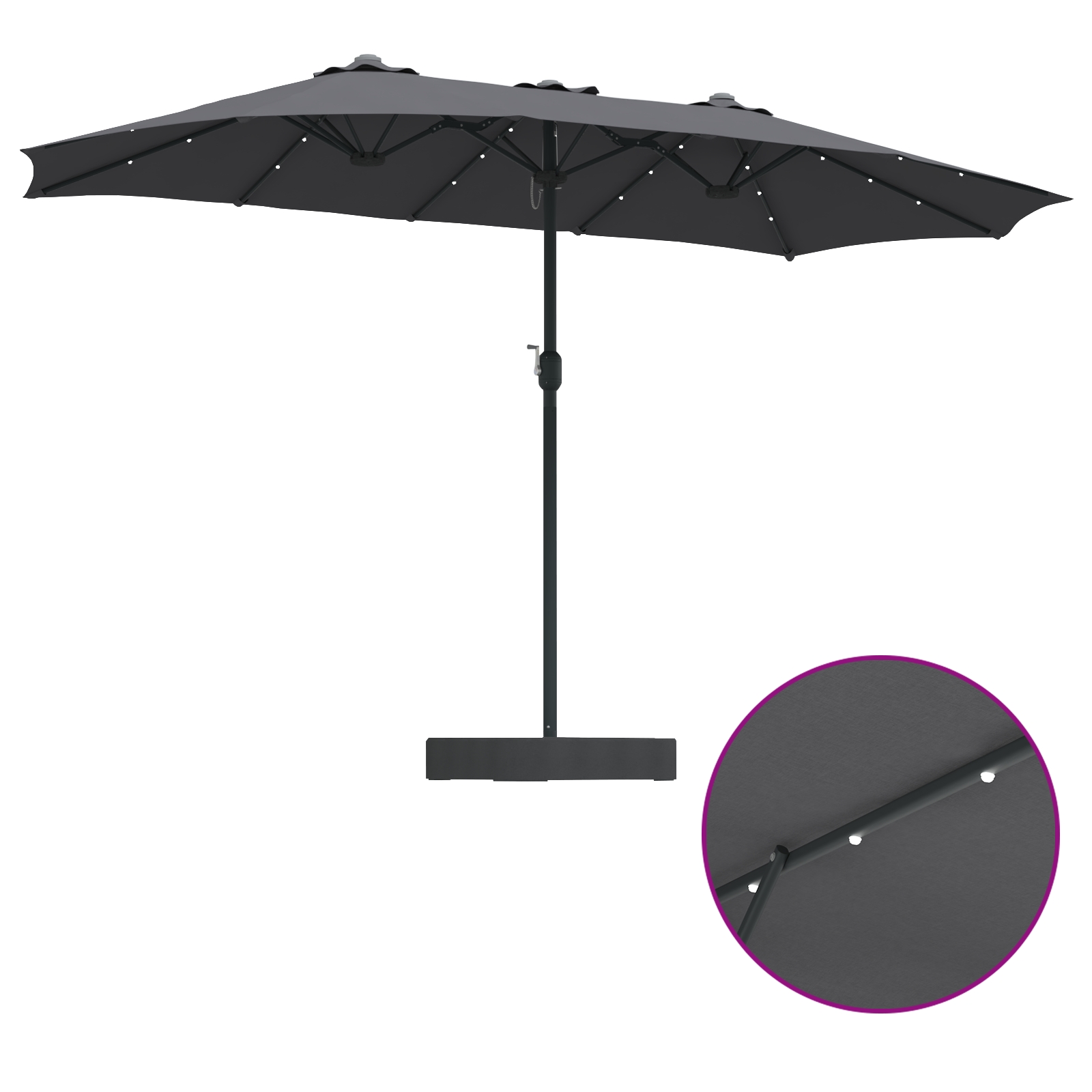 - Structură robustă: Construit din oțel vopsit electrostatic cu un acoperiș din poliester premium, acest parasolar oferă suport robust și rezistență la vreme. Structura sa rezistentă asigură utilizarea fiabilă și o bază stabilă care rezistă unei varietăți de condiții meteorologice, reflectând longevitate și fiabilitate.