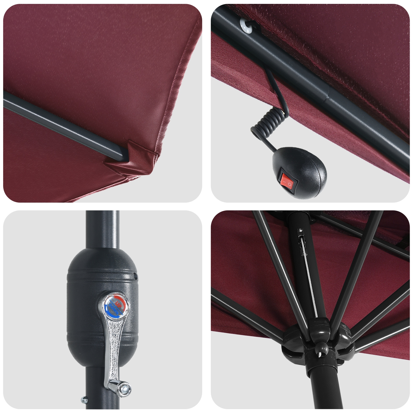 • Luminile LED: Echipat cu lumini LED strălucitoare, acest parasolar îți luminează serile afară. LED-urile sunt ecologice și oferă o lumină plăcută, perfectă pentru momentele petrecute afară.